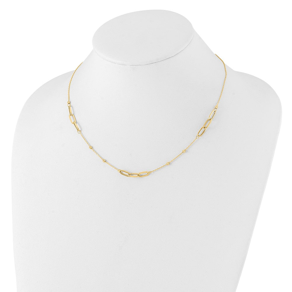 14K Yellow Gold Polished Linked Ovals and Diamond-cut Beads Fancy 3-Station 18 Inch Necklace