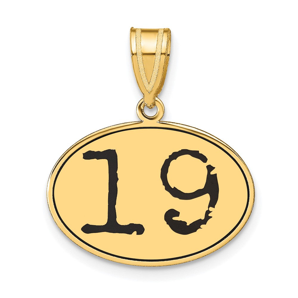 14k Yellow Gold Polished Number 19 Black Enamel Oval Pendant