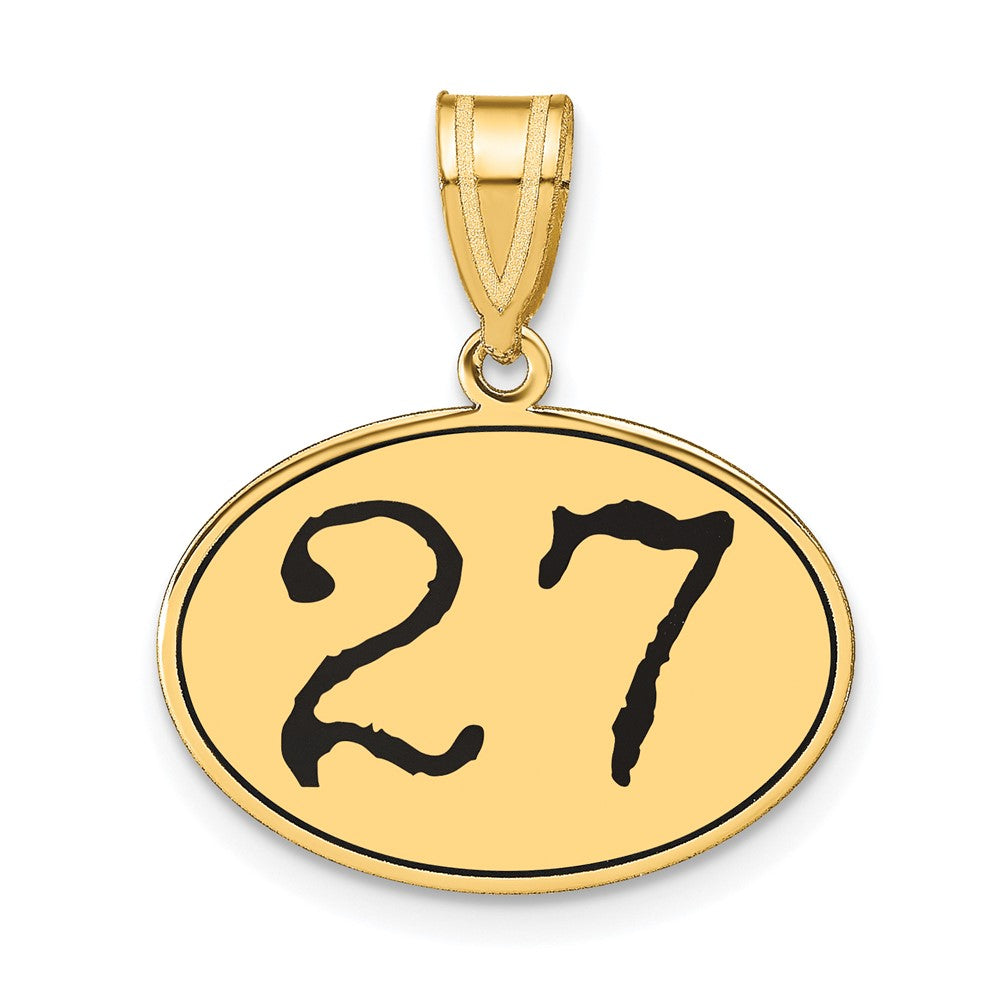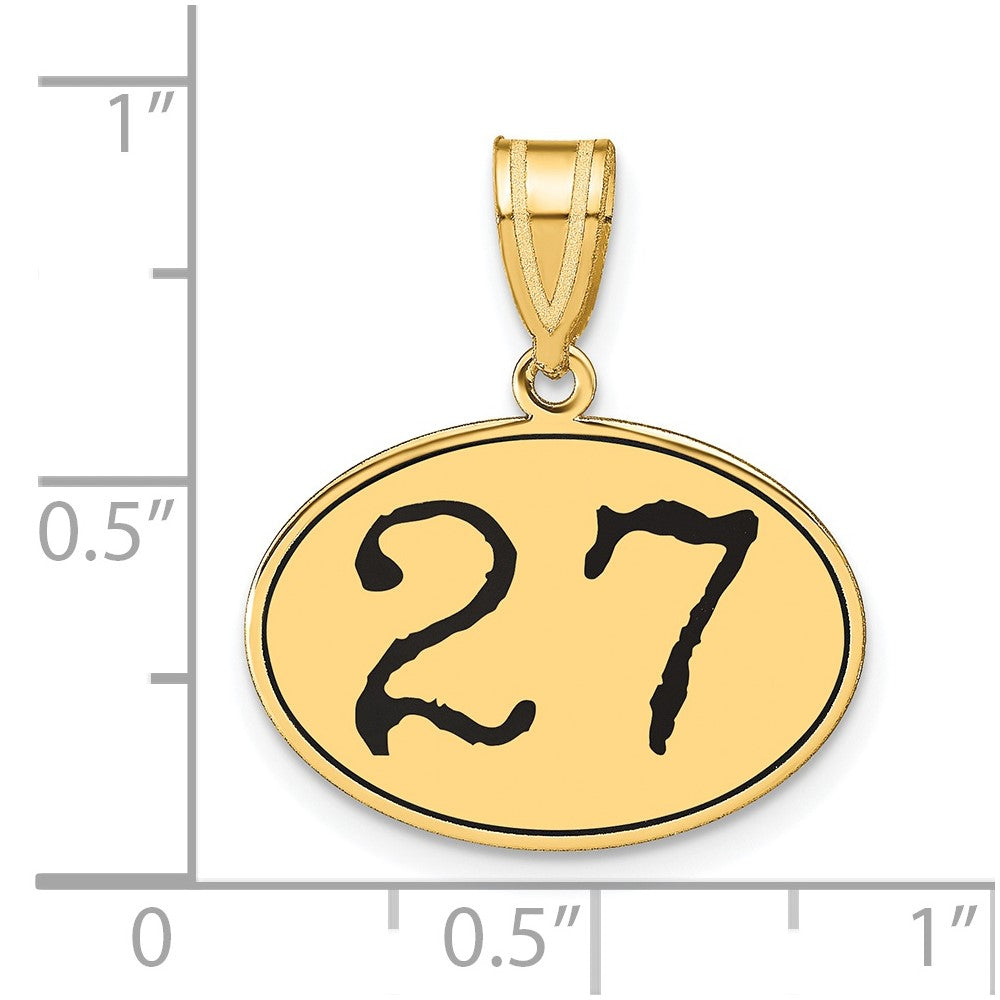 14k Yellow Gold Polished Number 27 Black Enamel Oval Pendant