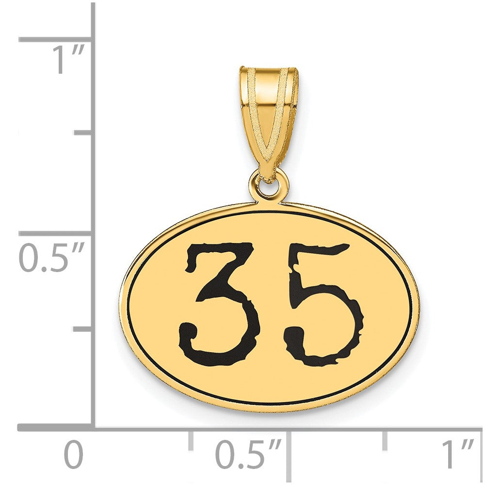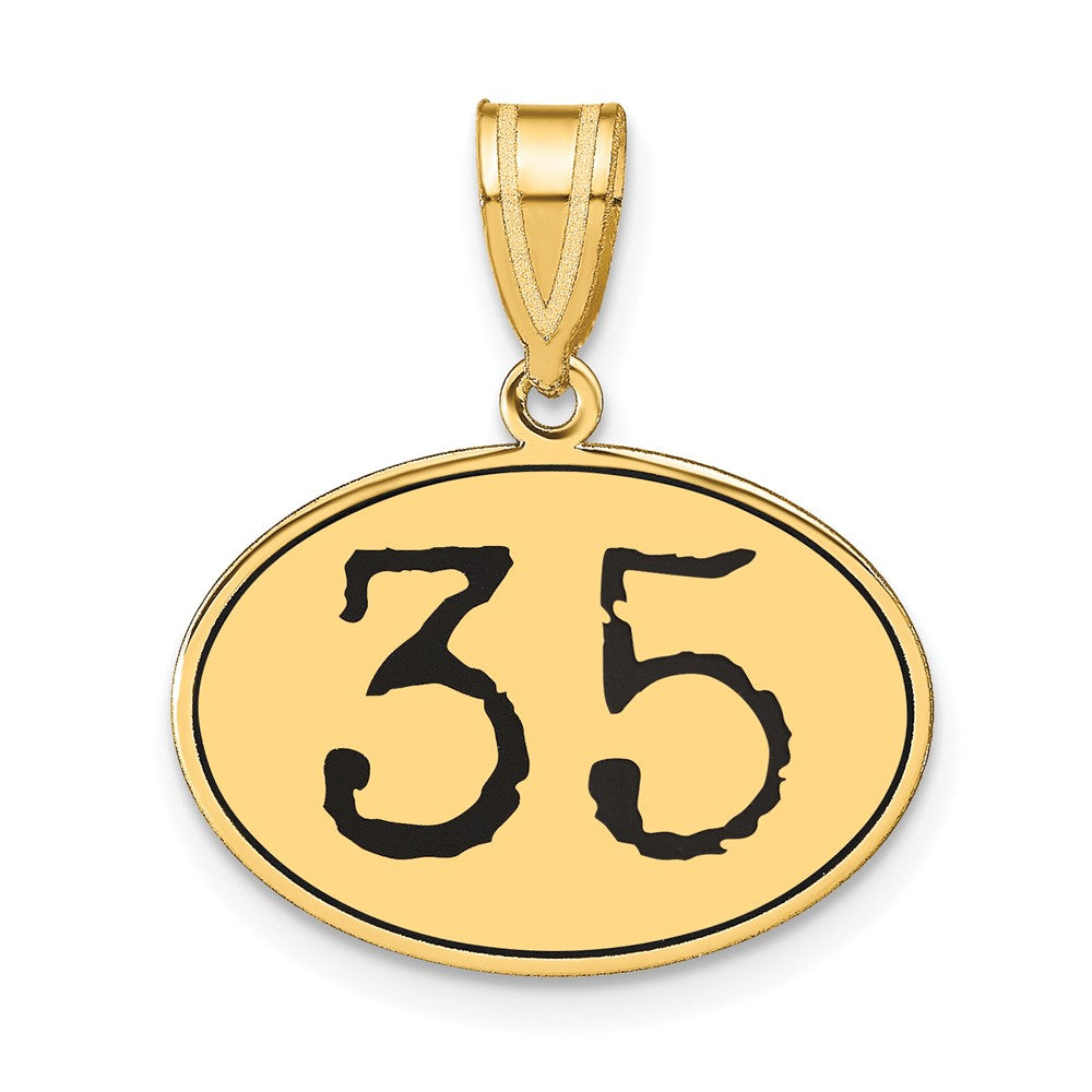 14k Yellow Gold Polished Number 35 Black Enamel Oval Pendant
