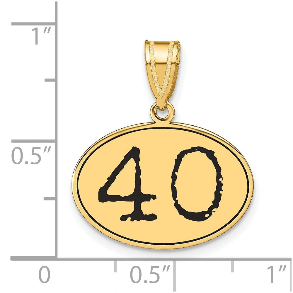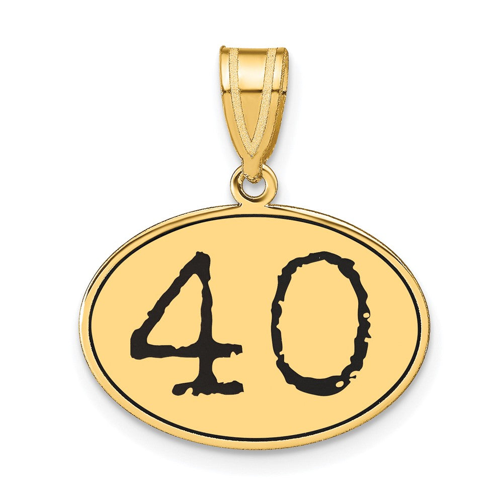 14k Yellow Gold Polished Number 40 Black Enamel Oval Pendant