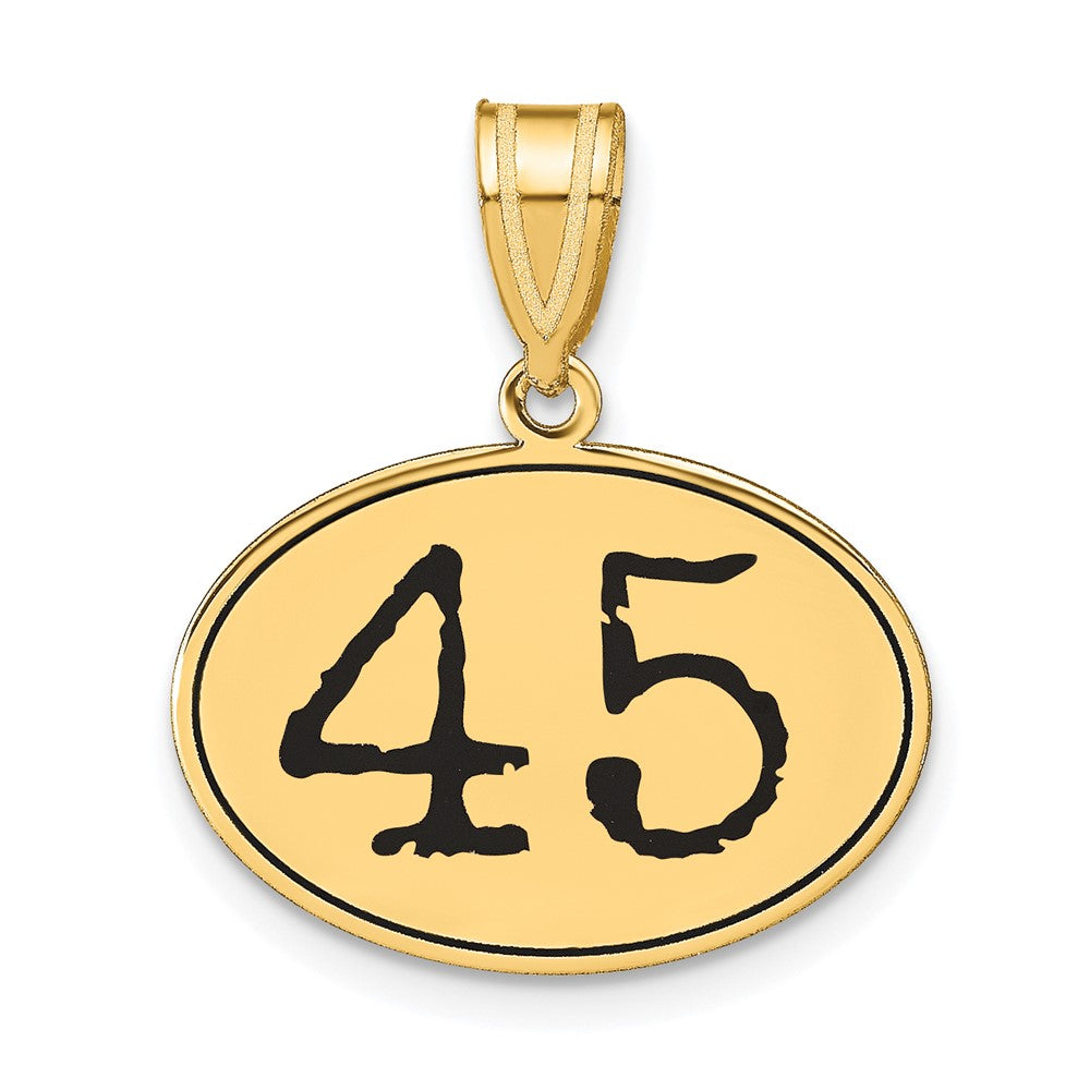 14k Yellow Gold Polished Number 45 Black Enamel Oval Pendant