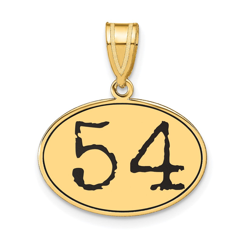 14k Yellow Gold Polished Number 54 Black Enamel Oval Pendant
