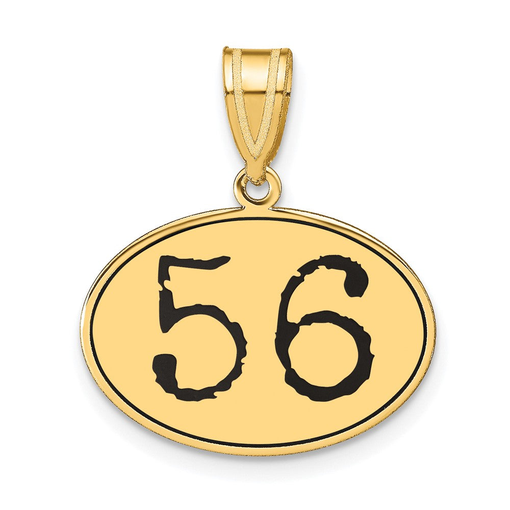14k Yellow Gold Polished Number 56 Black Enamel Oval Pendant