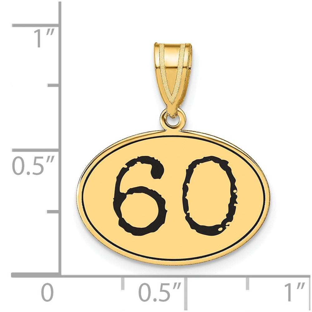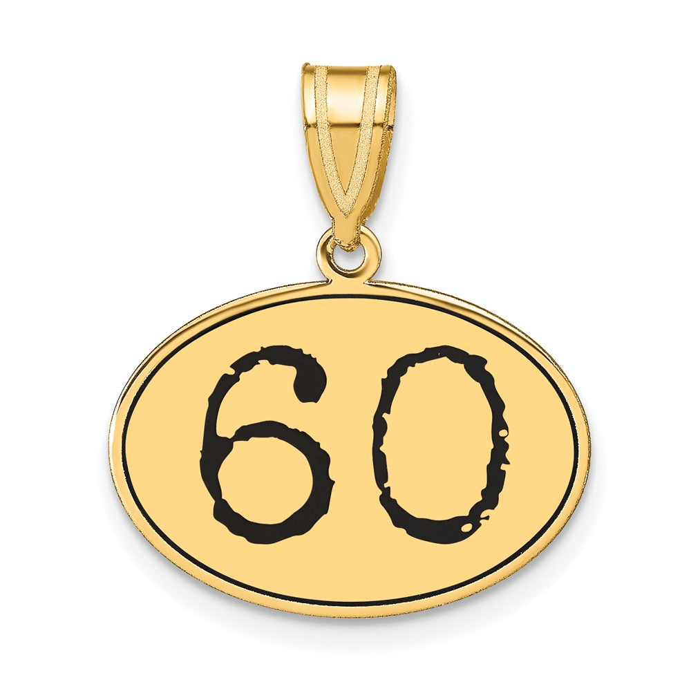 14k Yellow Gold Polished Number 60 Black Enamel Oval Pendant