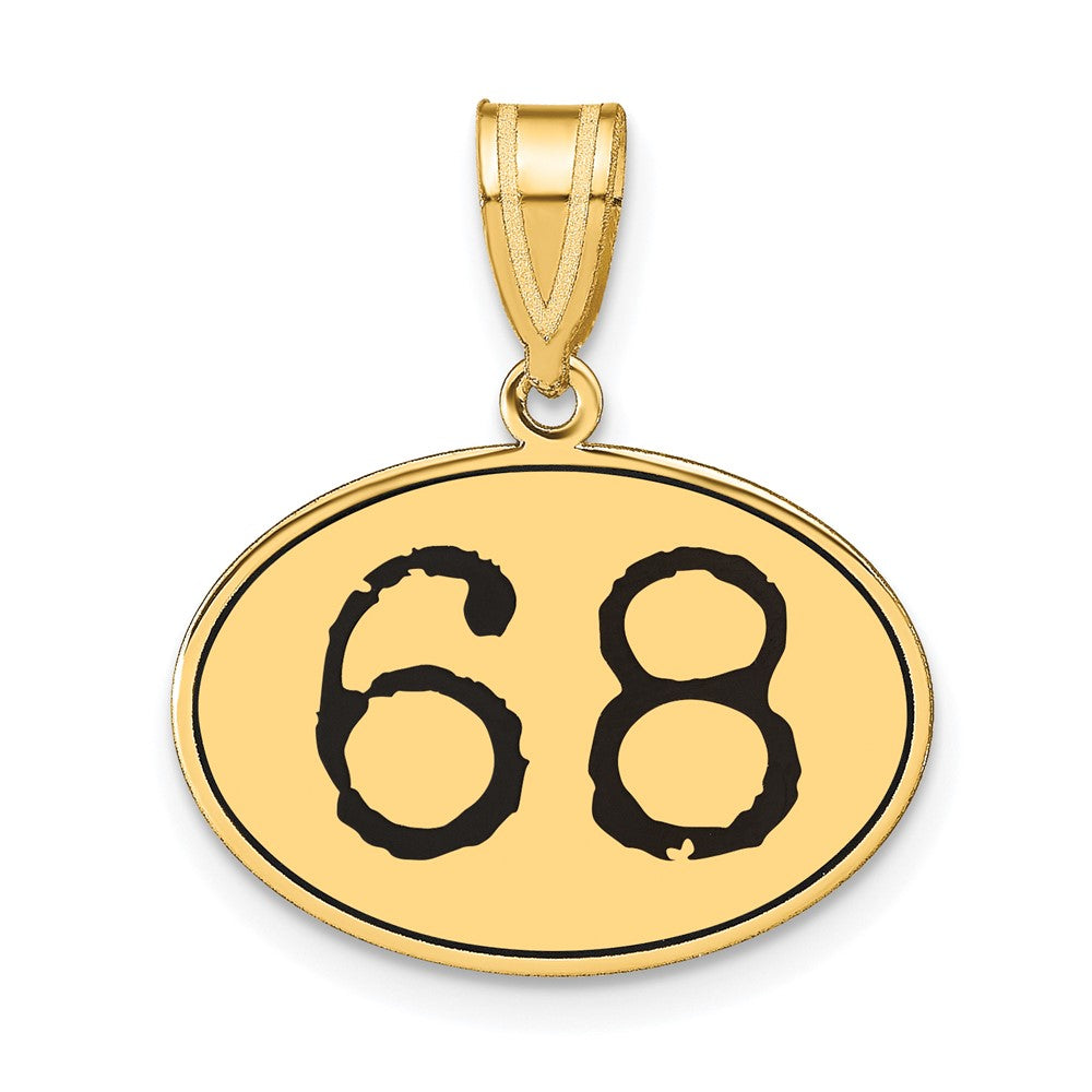 14k Yellow Gold Polished Number 68 Black Enamel Oval Pendant