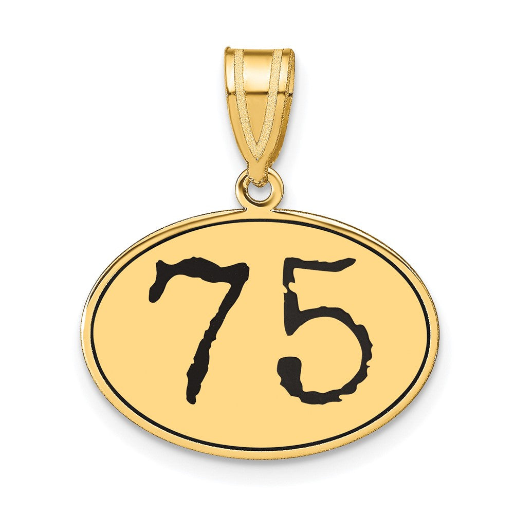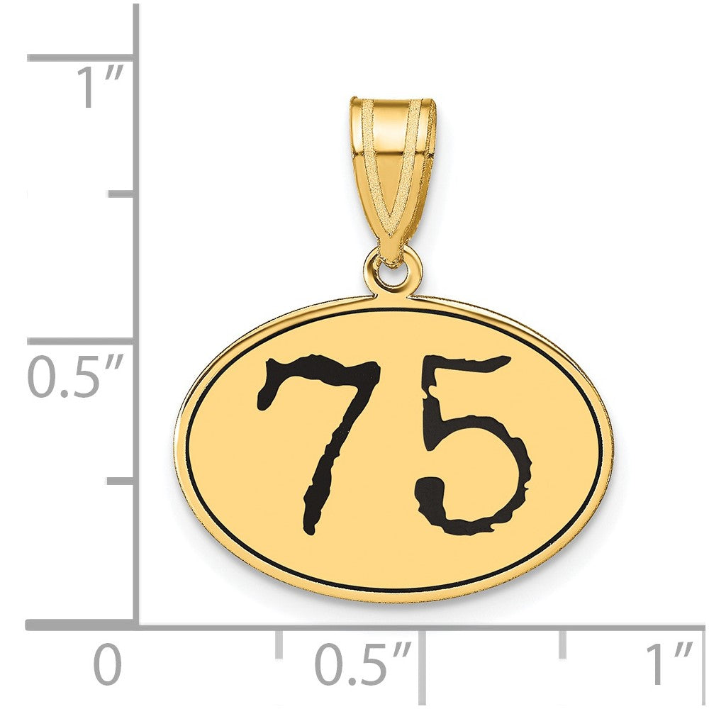 14k Yellow Gold Polished Number 75 Black Enamel Oval Pendant