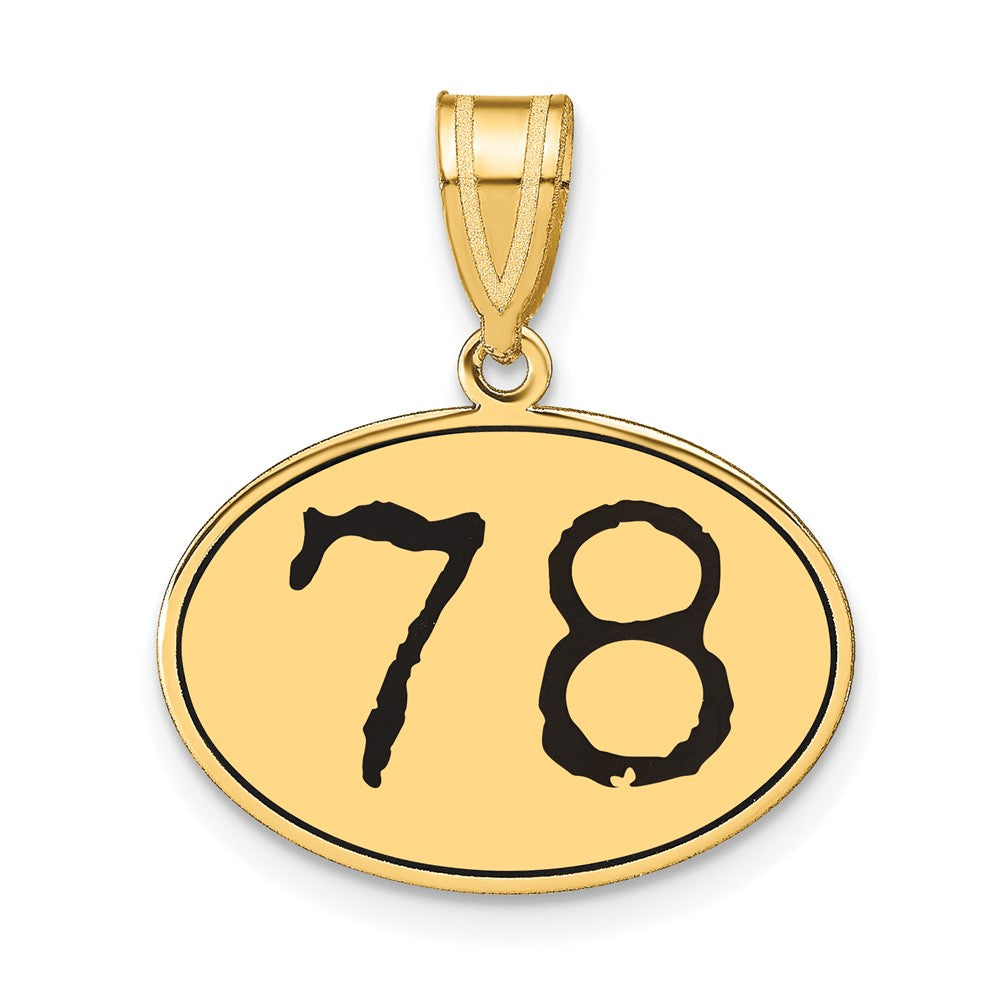 14k Yellow Gold Polished Number 78 Black Enamel Oval Pendant