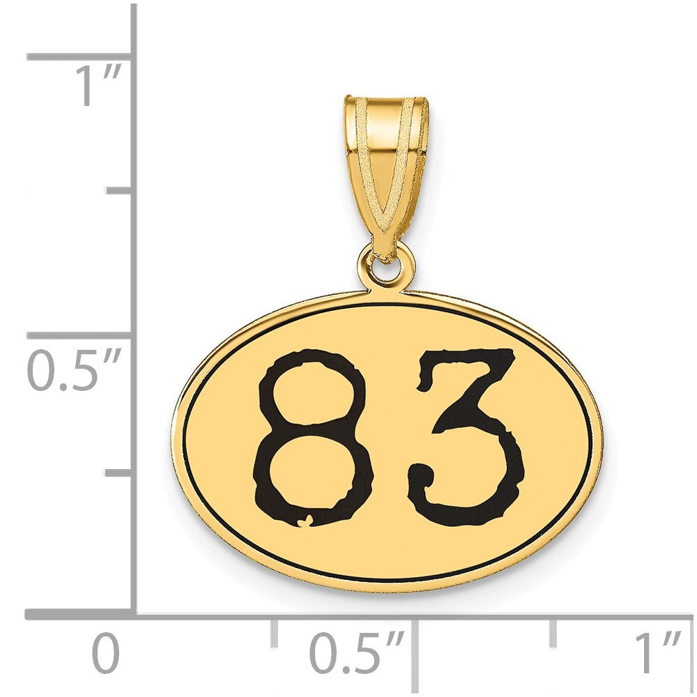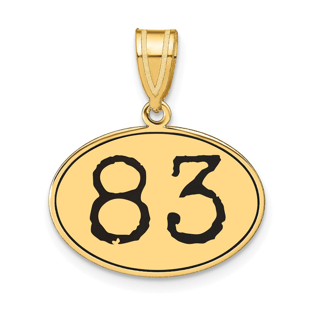 14k Yellow Gold Polished Number 83 Black Enamel Oval Pendant