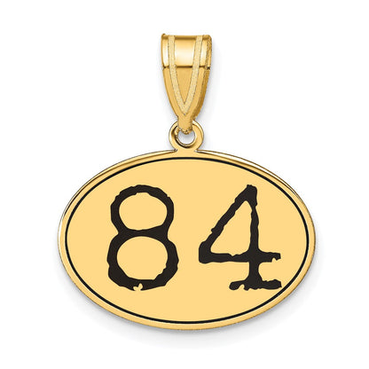14k Yellow Gold Polished Number 84 Black Enamel Oval Pendant