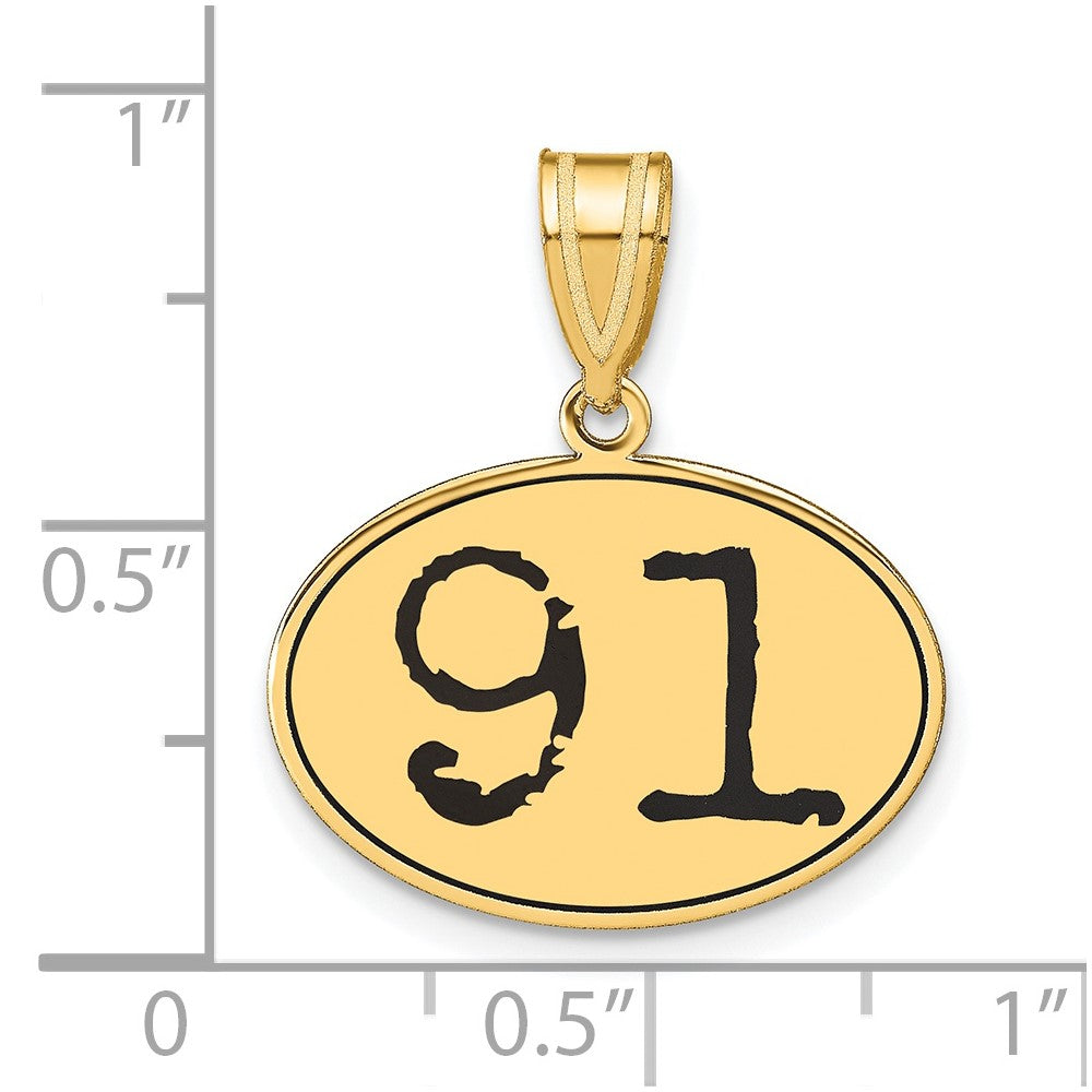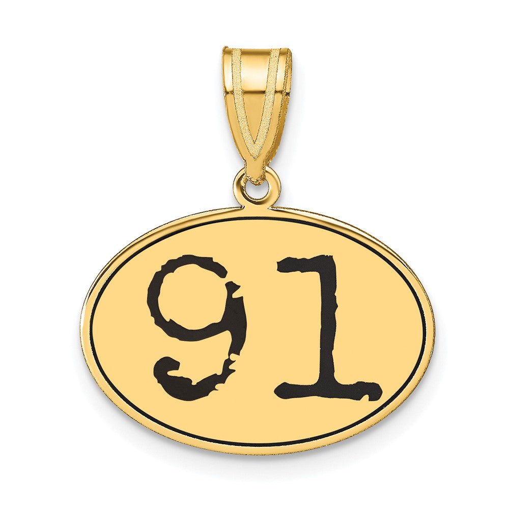 14k Yellow Gold Polished Number 91 Black Enamel Oval Pendant
