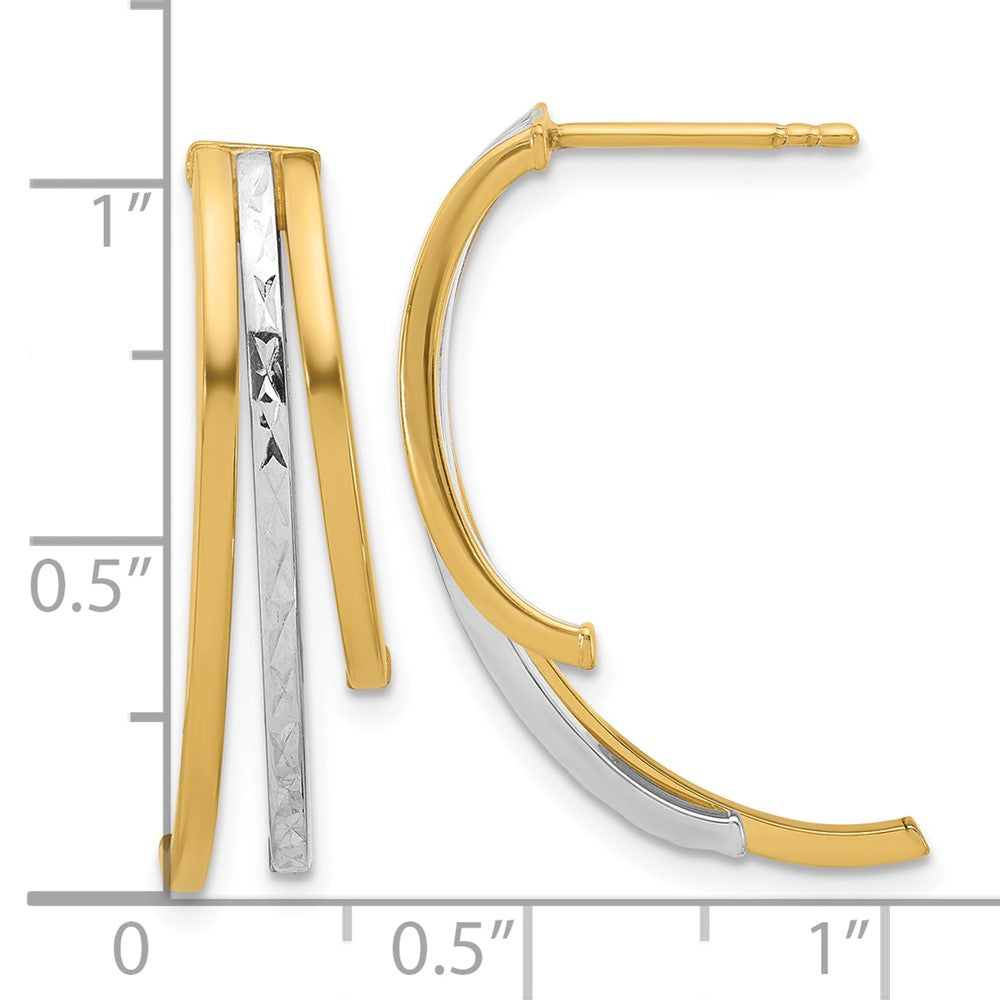 The 14K Yellow & Rhodium 14K W/Rhodium Polished And D/C 3-Row Drop Post Earrings are a stunning jewelry piece for women. They feature a polished finish that adds shine and a modern look. These earrings are lightweight, making them easy to wear all day. The design includes three rows with a mix of yellow gold and white accents, creating a striking contrast. The drop style offers elegant movement, perfect for both casual and formal outfits. With a lifetime guarantee, the 14K Yellow & Rhodium 14K W/Rhodium Polished And D/C 3-Row Drop Post Earrings deliver style and quality you can trust.