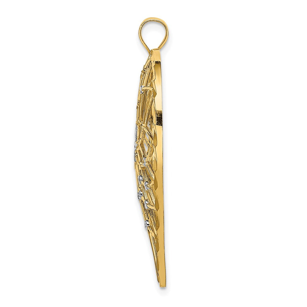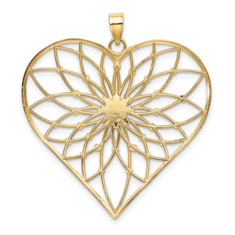 14k Yellow u0026 Rhodium Gold with White Rhodium Diamond-cut Large Filigree Heart Pendant