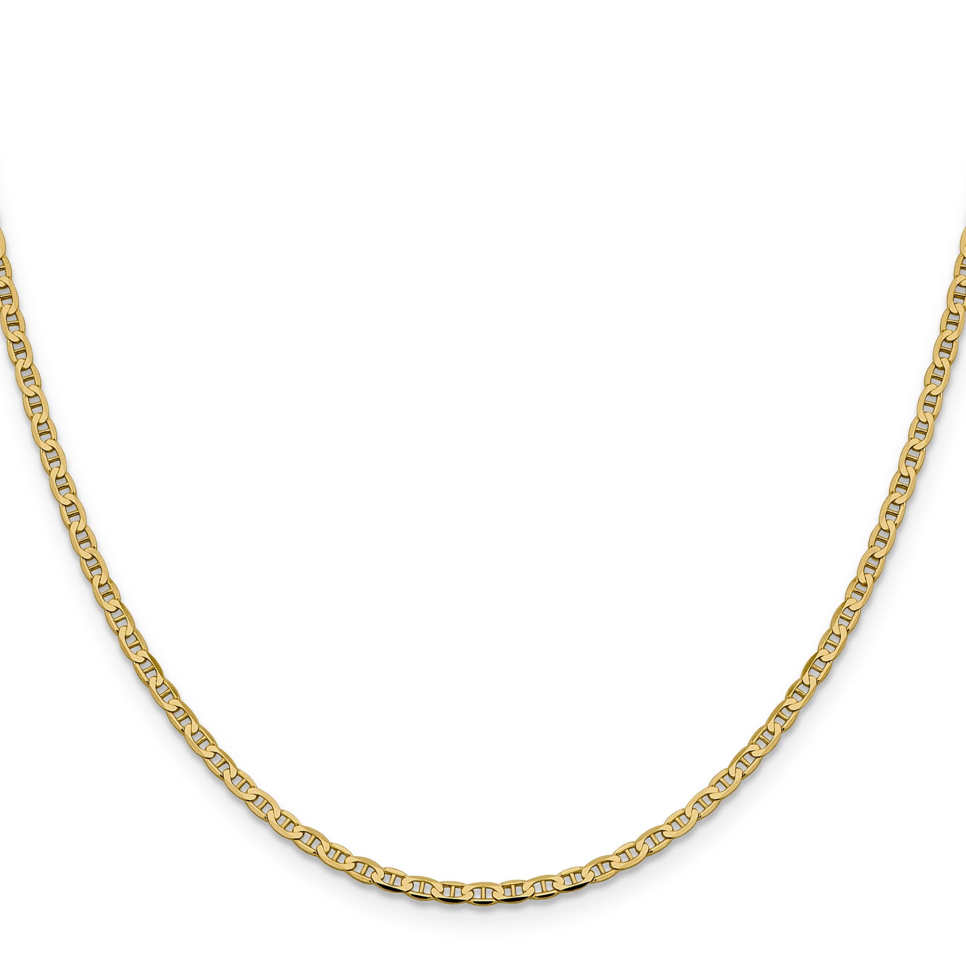 The 18 Inch 10K 2.4mm Flat Anchor Chain embodies elegance and durability for any fine jewelry collection. Crafted from high-quality 10K gold, this polished chain showcases a stunning yellow hue. Its 2.4mm width provides a perfect blend of subtlety and presence. The 18-inch length makes it versatile for layering or wearing solo. The flat anchor design adds a unique touch, while the secure lobster clasp ensures it stays in place. Expertly casted and machine-made, the 18 Inch 10K 2.4mm Flat Anchor Chain is a classic choice for everyday wear or special occasions.
