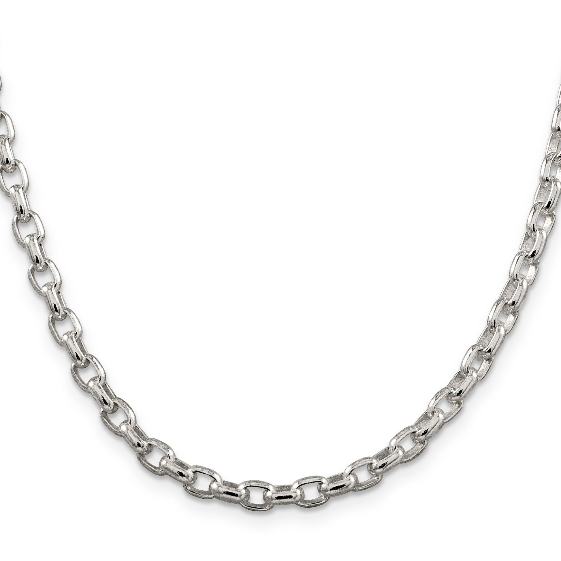 The 18 Inch Sterling Silver 4.4mm Oval Fancy Rolo Chain is a must-have for jewelry lovers. Crafted from 925 sterling silver, it glows with a polished finish. Its solid 18-inch length showcases a refined 4.4mm width, perfect for both standout pieces or layering. The trusty lobster clasp ensures this necklace stays secure while you flaunt your style. The white-colored chain exudes a timeless appeal, effortlessly enhancing any outfit. Treat yourself or a loved one to the 18 Inch Sterling Silver 4.4mm Oval Fancy Rolo Chain and elevate your accessory game.