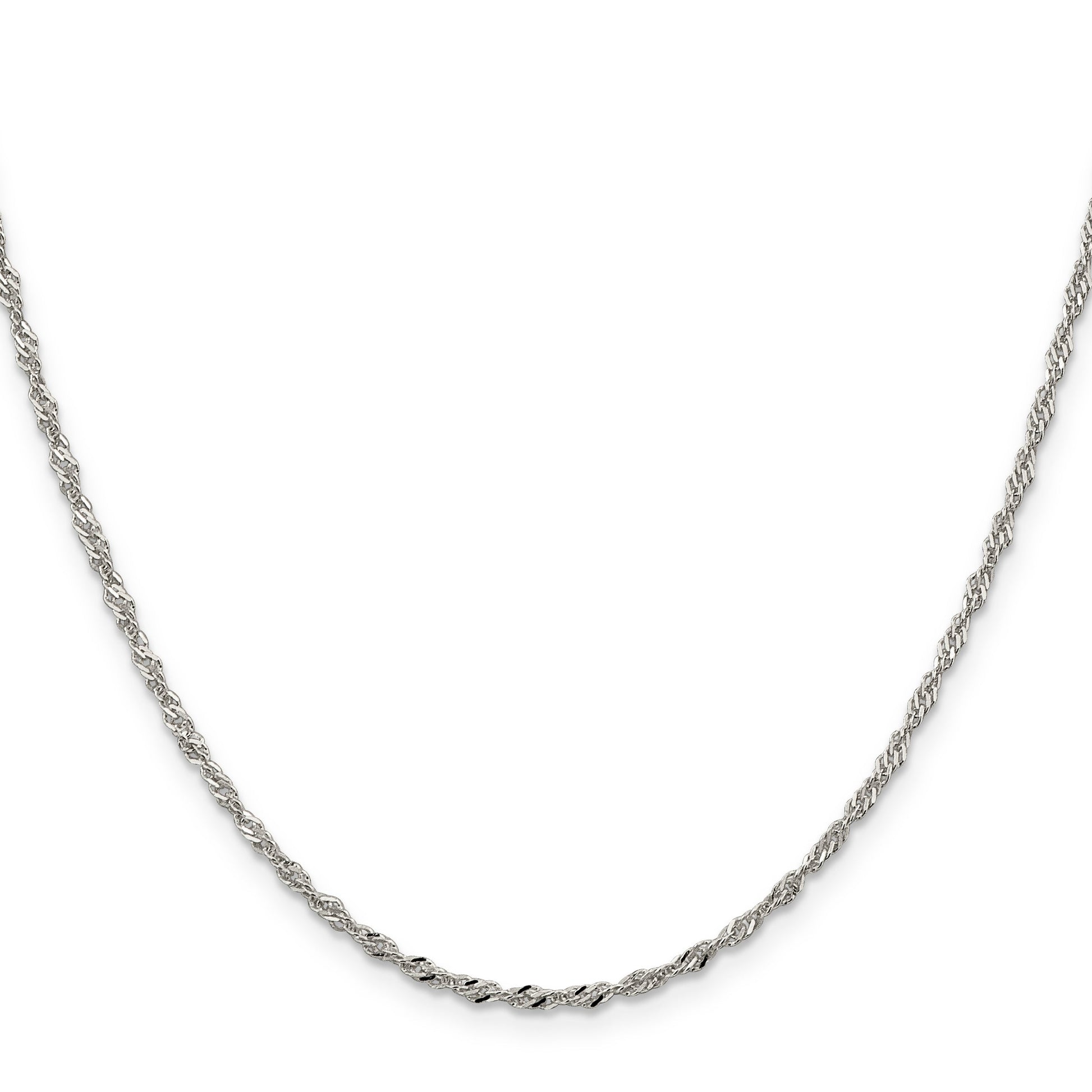 The 22 Inch Sterling Silver 2mm Singapore Chain with a 4-Inch Extender is a stunning piece of jewelry that effortlessly elevates any look. Made from 925 sterling silver, this polished chain showcases a timeless Singapore design that is both elegant and versatile. The chain is 22 inches long and can extend an additional 4 inches, providing flexibility for different styles and outfits. Boasting a secure lobster clasp, this solid jewelry piece is perfect for women who appreciate classic beauty. The gleaming 2mm width adds a touch of sophistication to this sterling silver masterpiece.