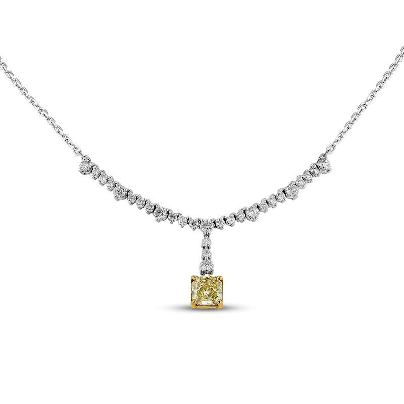 4 CT. T.W. Certified Radiant Fancy Yellow and White Natural Diamond Necklace in 14K White Gold (SI1) - 17"