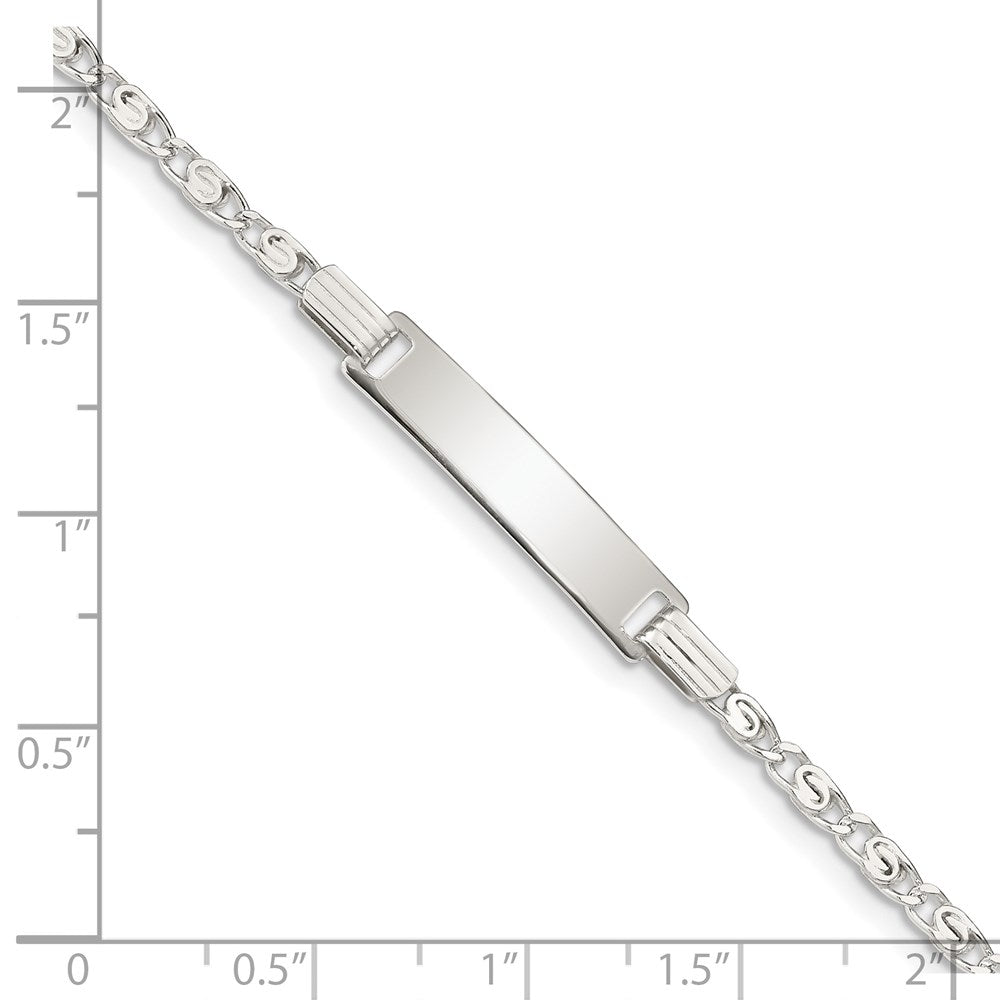 The 5.5-Inch Sterling Silver Polished Engravable Children's ID Bracelet is a precious keepsake for your little one. Crafted from sterling silver with a purity of 925, this bracelet gleams with a polished finish. Its 5.5-inch length and 3 mm link chain make it suitable for small wrists. The 6 mm width coupled with a spring ring clasp ensures both style and security. Personalized engraving adds a touch of love to this piece, making it an ideal gift. This solid, casted beauty will be cherished for years to come.