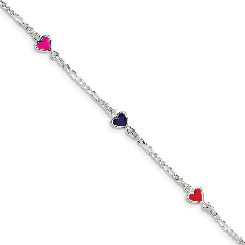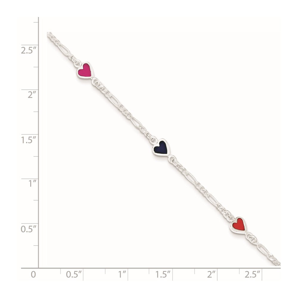 6 Inch Sterling Silver Polished & Multi-Color Enameled Hearts With 1 Extension Children'S Bracelet