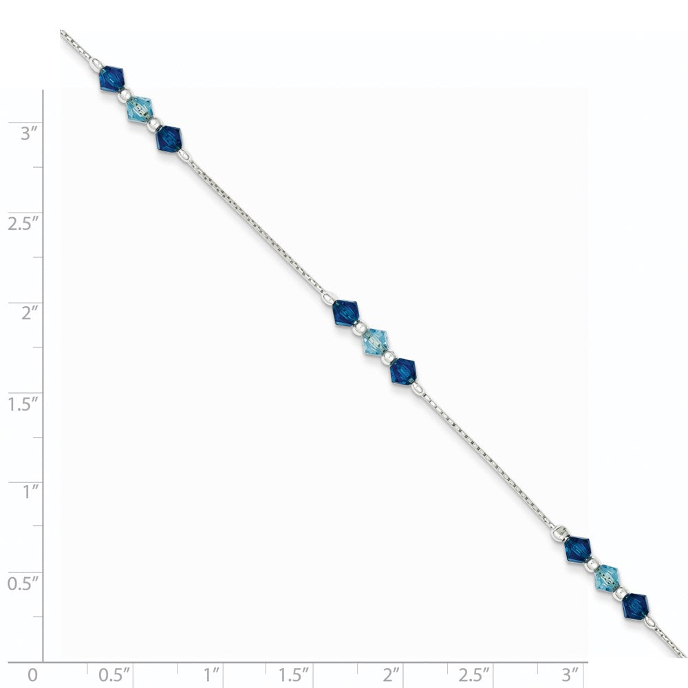 Elevate your ensemble with this stunning 7.5 Inch Sterling Silver Polished Aquamarine Capri Blue Glass Bead Bracelet. Crafted with 925 sterling silver, its polished finish gleams with elegance. The aquamarine beads, in a striking Capri blue, bring a burst of color to your wrist. The bracelet measures 7.5 inches, featuring a delicate fancy chain that offers a touch of sophistication. A secure lobster clasp holds it in place, ensuring it remains a staple in your jewelry collection. Whether dressed up or down, this bracelet offers the perfect touch of elegance. The 7.5 Inch Sterling Silver Polished Aquamarine Capri Blue Glass Bead Bracelet is a timeless addition to any wardrobe.
