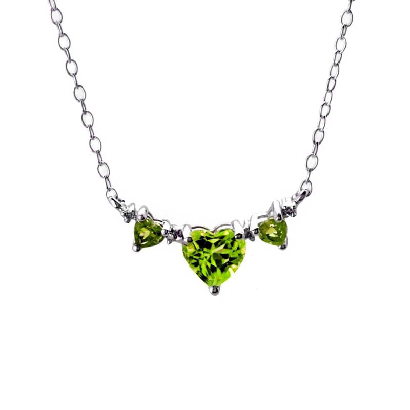 Heart-Shaped Peridot and Natural Diamond Accent Three Stone Necklace in Sterling Silver