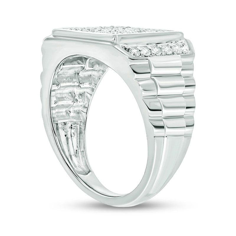 Men's 1.0 CT. T.W. Natural Diamond Square-Top Ribbed Shank Ring in Solid 10K White Gold