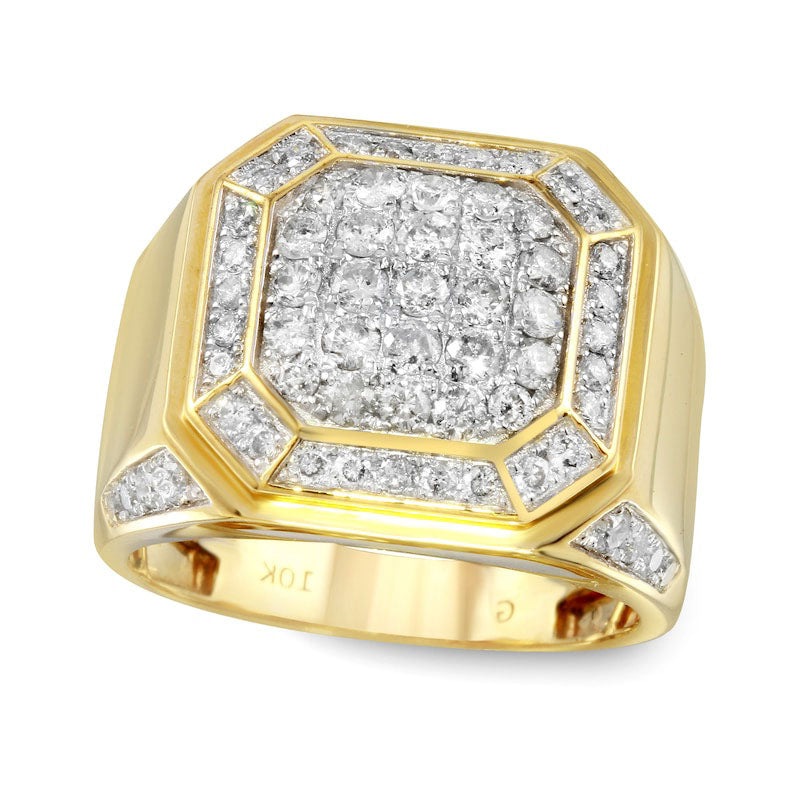 Men's 2.0 CT. T.W. Composite Natural Diamond Octagon Ring in Solid 10K Yellow Gold - Size 10
