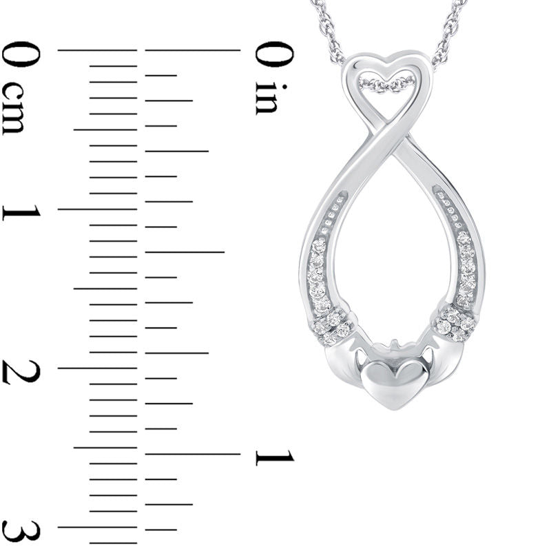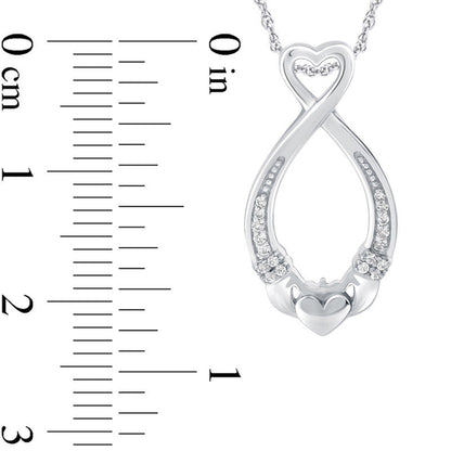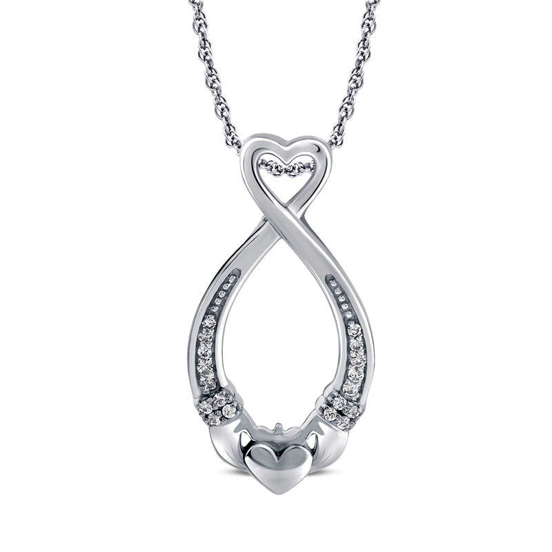 Natural Diamond Accent Claddagh Heart Loop Pendant in Sterling Silver