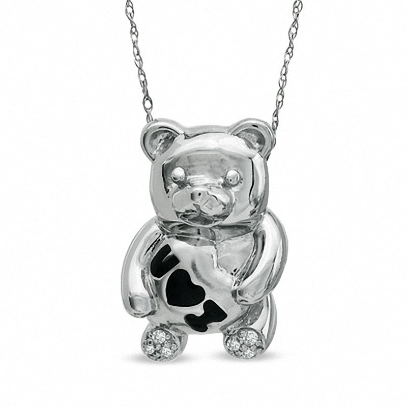 Natural Diamond Accent "I Heart U" Teddy Bear Pendant in 10K White Gold