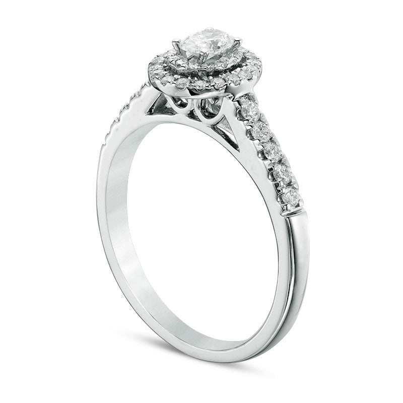 Previously Owned - 0.50 CT. T.W. Oval Natural Diamond Double Frame Engagement Ring in Solid 14K White Gold