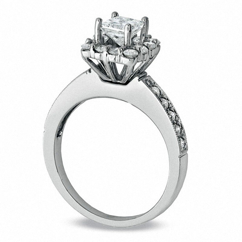 Previously Owned - 0.63 CT. T.W. Princess-Cut Natural Diamond Frame Antique Vintage-Style Engagement Ring in Solid 14K White Gold