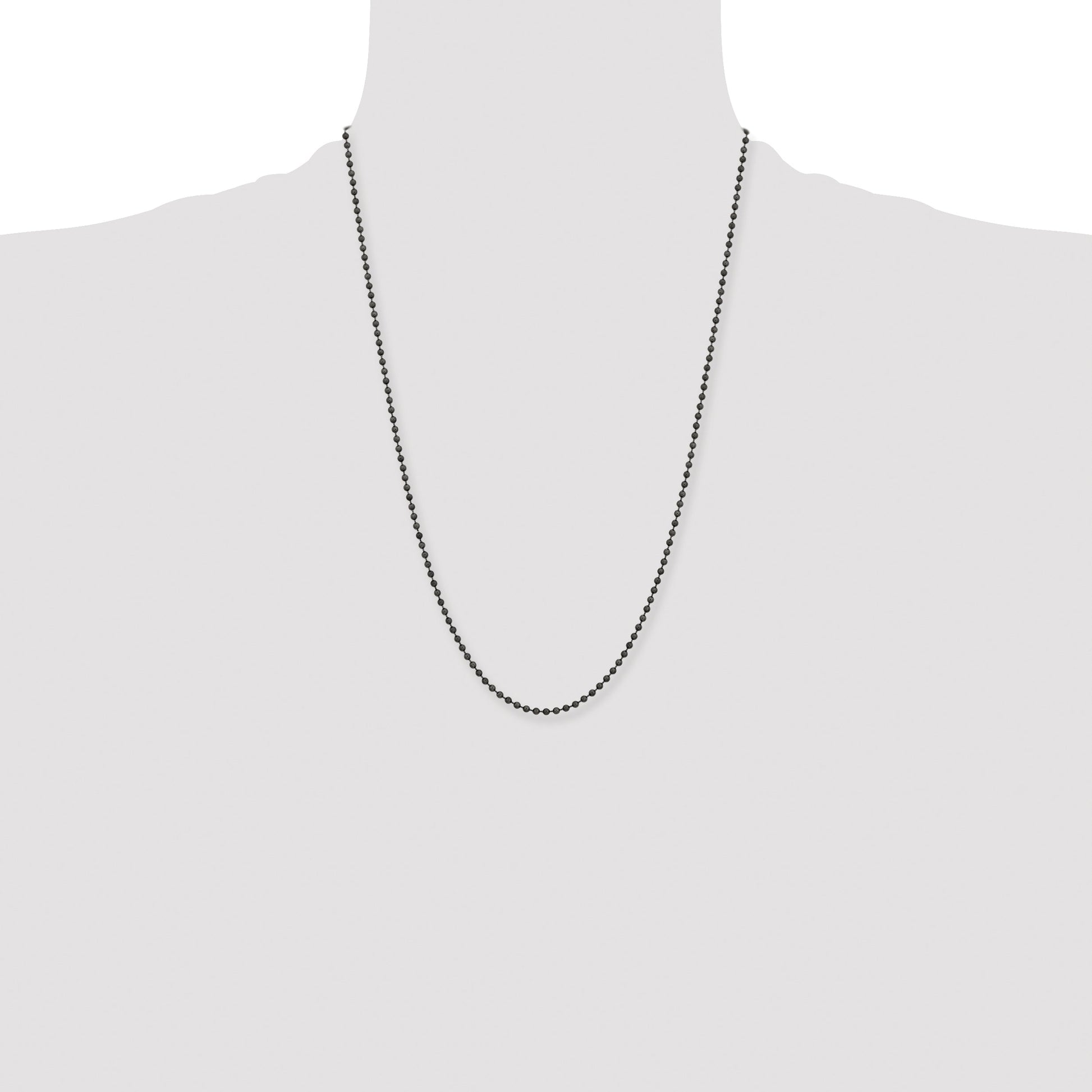 The Stainless Steel Chisel Antiqued 2.4mm Beaded Ball Chain Necklace seamlessly blends strength and elegance. Crafted from durable stainless steel, this 24-inch chain features a polished antiqued finish. The necklace's ball bead design adds a touch of refined charm. A fancy lobster clasp ensures secure wear. It's 2.4 mm wide, making it a bold yet lightweight accessory that suits any attire. Packaged in a sleek gift pouch, this unisex piece is perfect for anyone who appreciates understated sophistication. The Stainless Steel Chisel Antiqued necklace is an ideal choice for gifting or personal adornment.