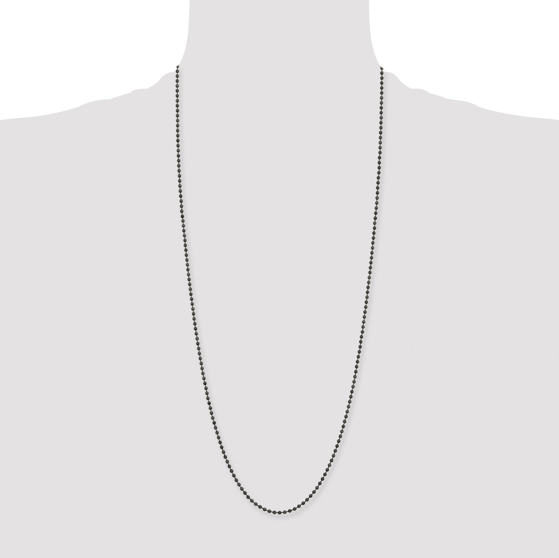The Stainless Steel Chisel Antiqued 2.4mm 30 Inch Beaded Ball Chain is a classic choice for any jewelry collection. With a vintage-inspired antiqued finish, this necklace is a stylish accessory for both men and women. The 30-inch ball chain is crafted from durable stainless steel, offering a sleek 2.4mm width. A fancy lobster clasp ensures secure wearing and easy removal. The chain's timeless design makes it versatile, perfect for layering or wearing alone. Gift-packaged in a pouch, the Stainless Steel Chisel Antiqued Ball Chain provides a perfect touch of style and durability.