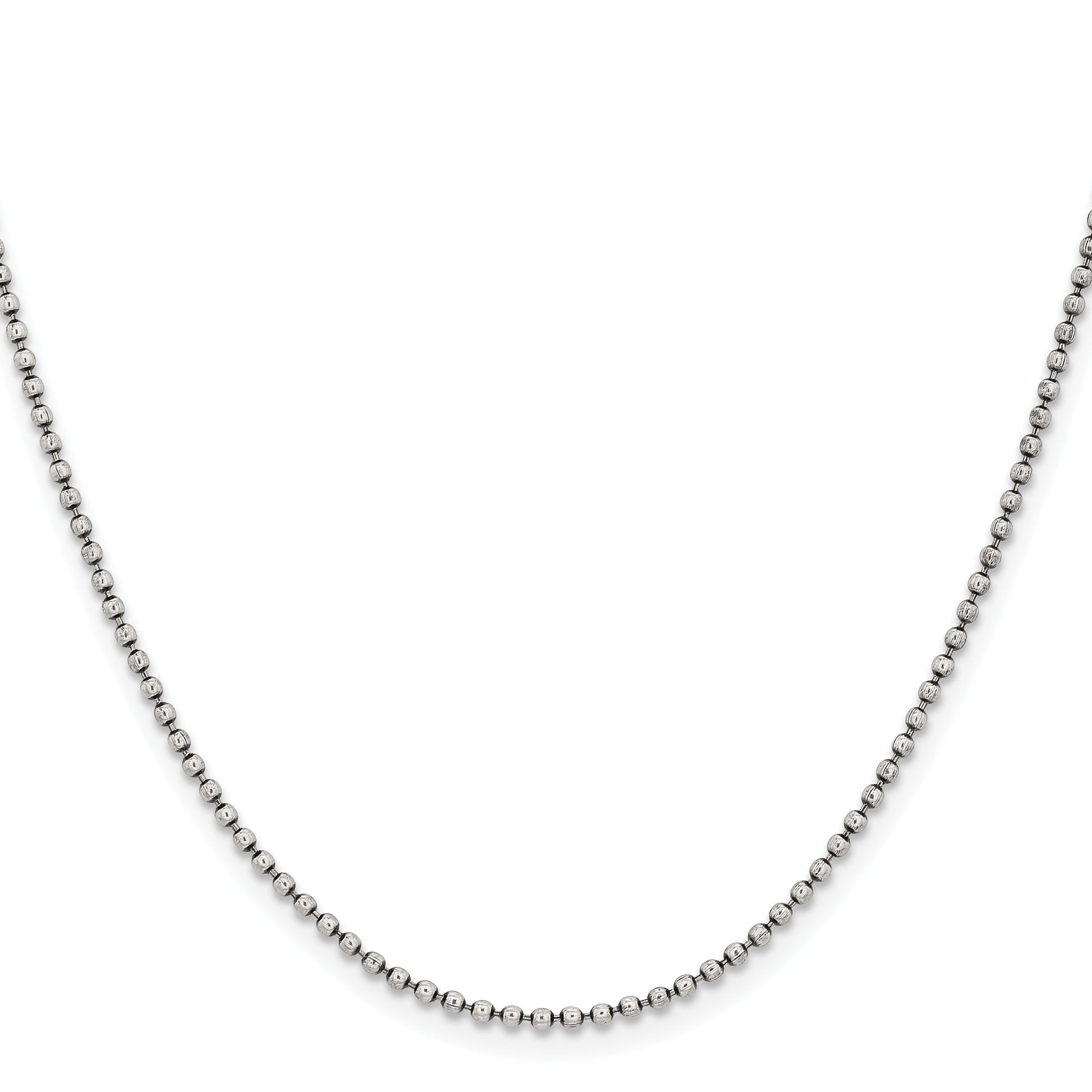 The Stainless Steel Chisel Antiqued 2mm 18 Inch Beaded Ball Chain is a stylish and versatile piece that suits any occasion. Crafted with a smooth polished finish and an antique touch, it exudes timeless elegance. This 18-inch chain features 2mm beaded balls, adding a unique texture and subtle charm. The high-quality stainless steel ensures lasting durability, while the fancy lobster clasp secures it comfortably around your neck. Perfectly packaged in a gift pouch, the chain makes a wonderful gift. Make the Stainless Steel Chisel Antiqued 2mm Chain your next accessory choice, standout and sparkle.