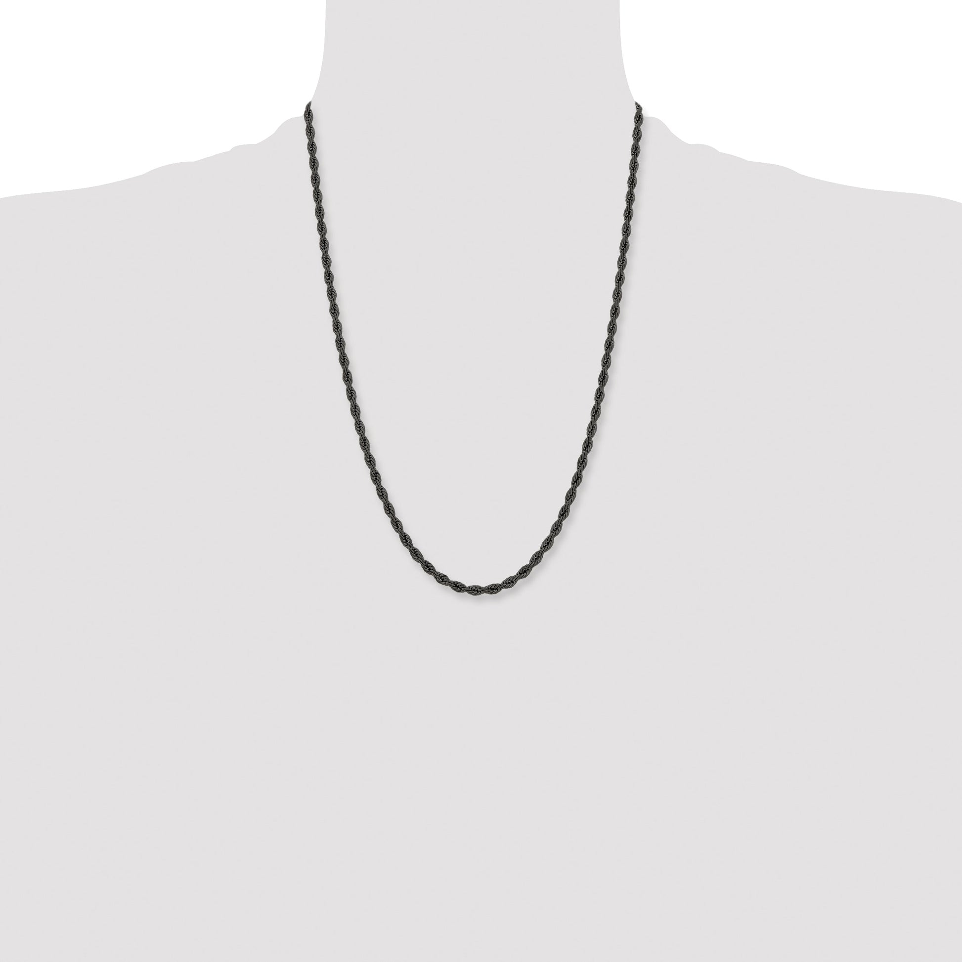 The Stainless Steel Chisel Polished Black IP-Plated 4mm 24-Inch Rope Chain is a stunning piece of jewelry designed to impress both men and women. Crafted from durable stainless steel, this chain boasts a sleek black IP plating that heightens its elegance. The 4mm wide rope chain provides a classic yet modern look, making it suitable for any outfit. A high-quality lobster clasp ensures a secure fit. Measuring 24 inches in length, it sits perfectly around your neck. The Stainless Steel Chisel Polished Black IP-Plated 4mm 24-Inch Rope Chain arrives in a gift pouch, ready for gifting or personal enjoyment.