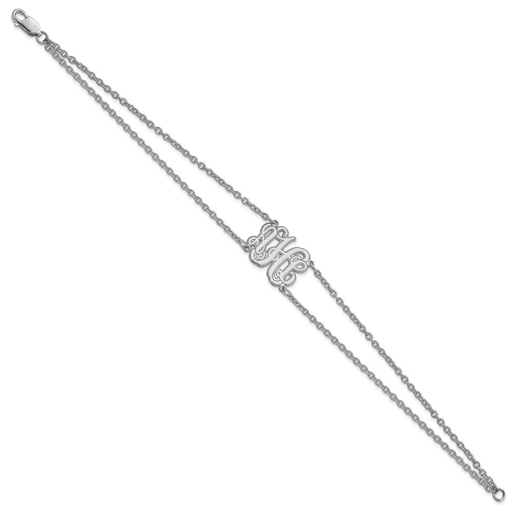 Sterling Silver Rhod Plated Double Chain Etched Monogram Bracelet