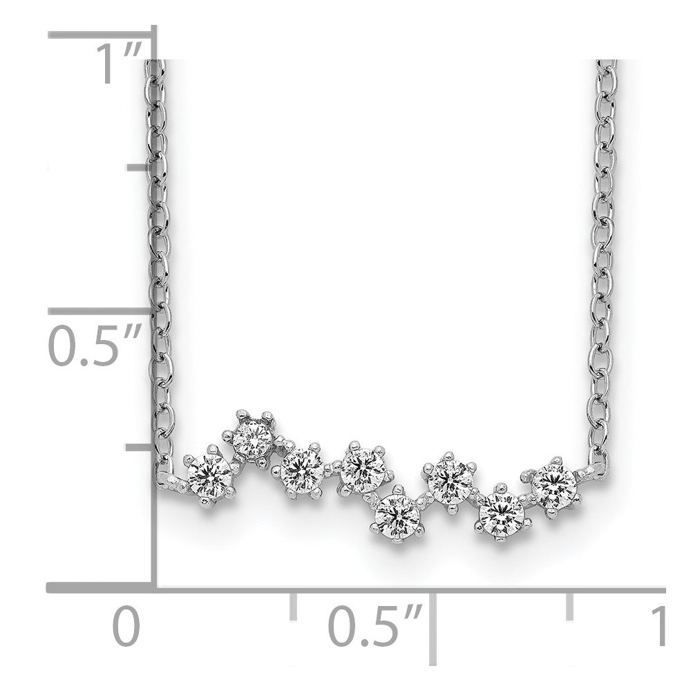 The Sterling Silver Rhodium-Plated CZ Stars Pendant Necklace is where elegance meets everyday style. Crafted from 925 sterling silver, this necklace shines with a polished finish and features round cubic zirconia stones that resemble twinkling stars. The stones, set in a classic 6-prong setting, ensure added sparkle. The necklace has a 16-inch cable chain and includes a 2-inch extender for adjustable length. A lobster clasp secures the necklace in place. This Sterling Silver Rhodium-Plated CZ Stars Pendant Necklace fits seamlessly into any jewelry collection and makes a versatile addition to every wardrobe.