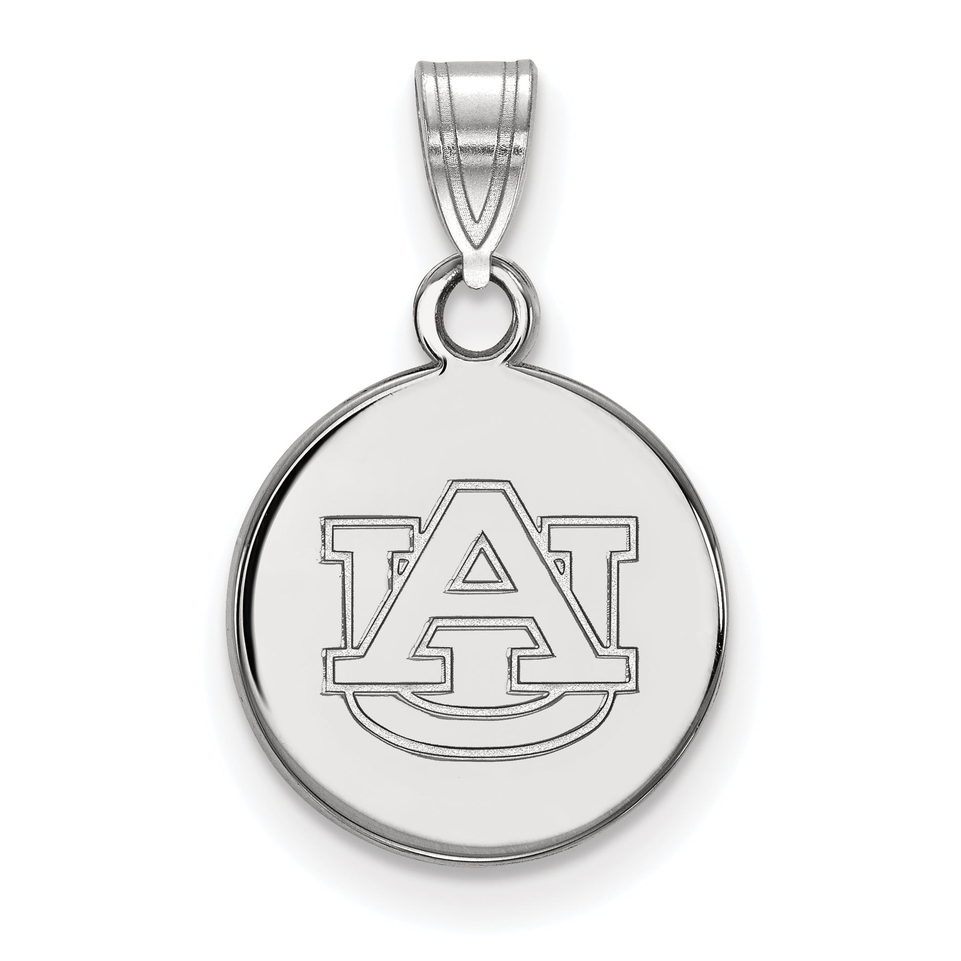 Sterling Silver Rhodium Plated Logoart Auburn University Small Disc Pendant