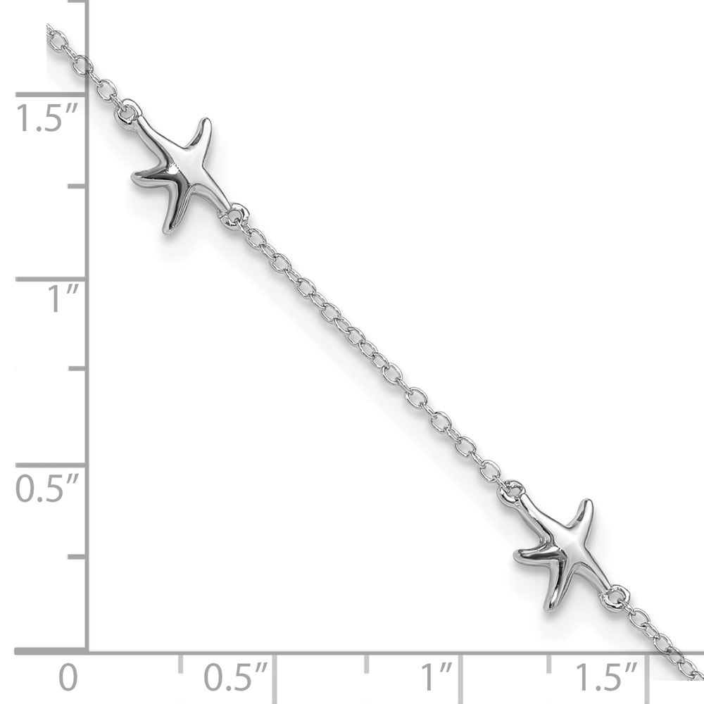 Meet the Sterling Silver Rhodium-Plated Starfish Anklet, a stunning blend of elegance and beachy charm. This anklet, crafted with quality 925 sterling silver and coated with rhodium, shines with a polished finish. The dainty starfish elements offer a playful touch, perfect for accessorizing your summer outfits. With its versatile 9-inch chain and a 2-inch extender, it comfortably graces any ankle. A robust lobster clasp ensures a secure wear. Designed with detailed cable links just 1.25 mm wide, this anklet exudes a delicate charm. Elevate your jewelry collection with the Sterling Silver Rhodium-Plated Starfish Anklet.