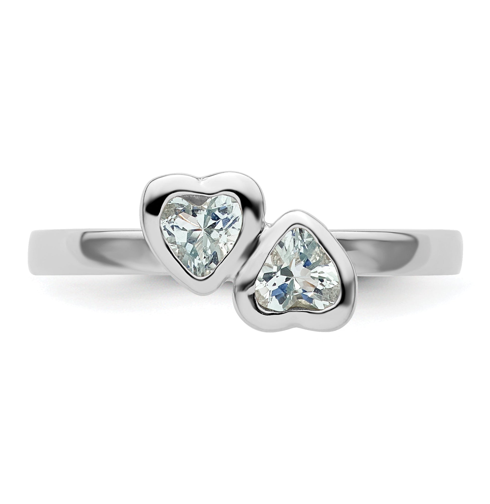 Discover the Sterling Silver Stackable Expressions Aquamarine Double Heart Ring, a perfect piece to add charm to your jewelry collection. Crafted from high-quality 925 sterling silver with a polished finish, this ring features two stunning blue aquamarine stones—each shaped like a heart and bezel set to catch the light beautifully. The 2.25mm band offers a solid feel, while the heating treatment enhances the stone’s vibrant hue. With its sweet design, the Sterling Silver Stackable Expressions Aquamarine Double Heart Ring makes a thoughtful gift or an everyday favorite for those who love fresh style and lasting quality.