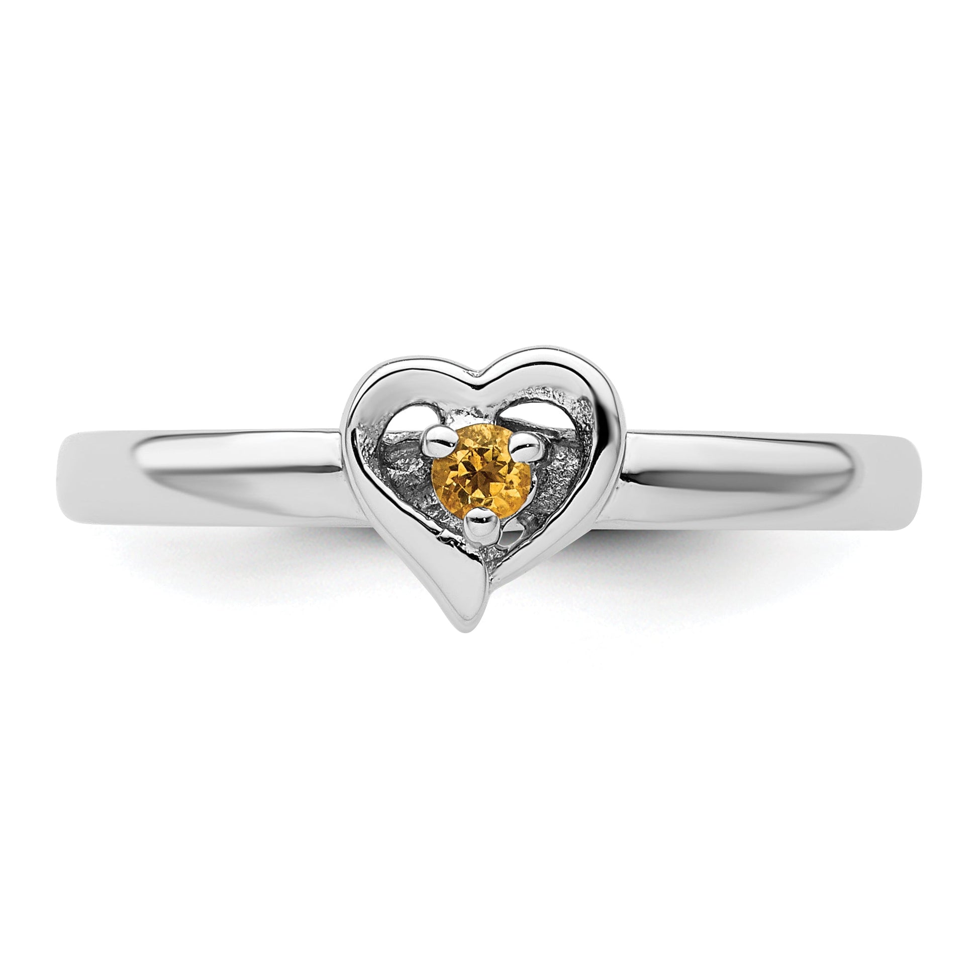 The Sterling Silver Stackable Expressions Citrine Heart Ring is a charming piece that adds a bright touch to any look. Crafted from high-quality 925 sterling silver, this ring features a vibrant yellow citrine stone, round in shape, and held securely with prongs. The natural citrine is heated to enhance its warm hue, giving the ring a rich glow. With a sleek, solid design, it’s perfect for stacking or wearing alone. This ring combines style with quality, making it a great choice for everyday wear. The Sterling Silver Stackable Expressions Citrine Heart Ring stands out with its clear, sunny look.