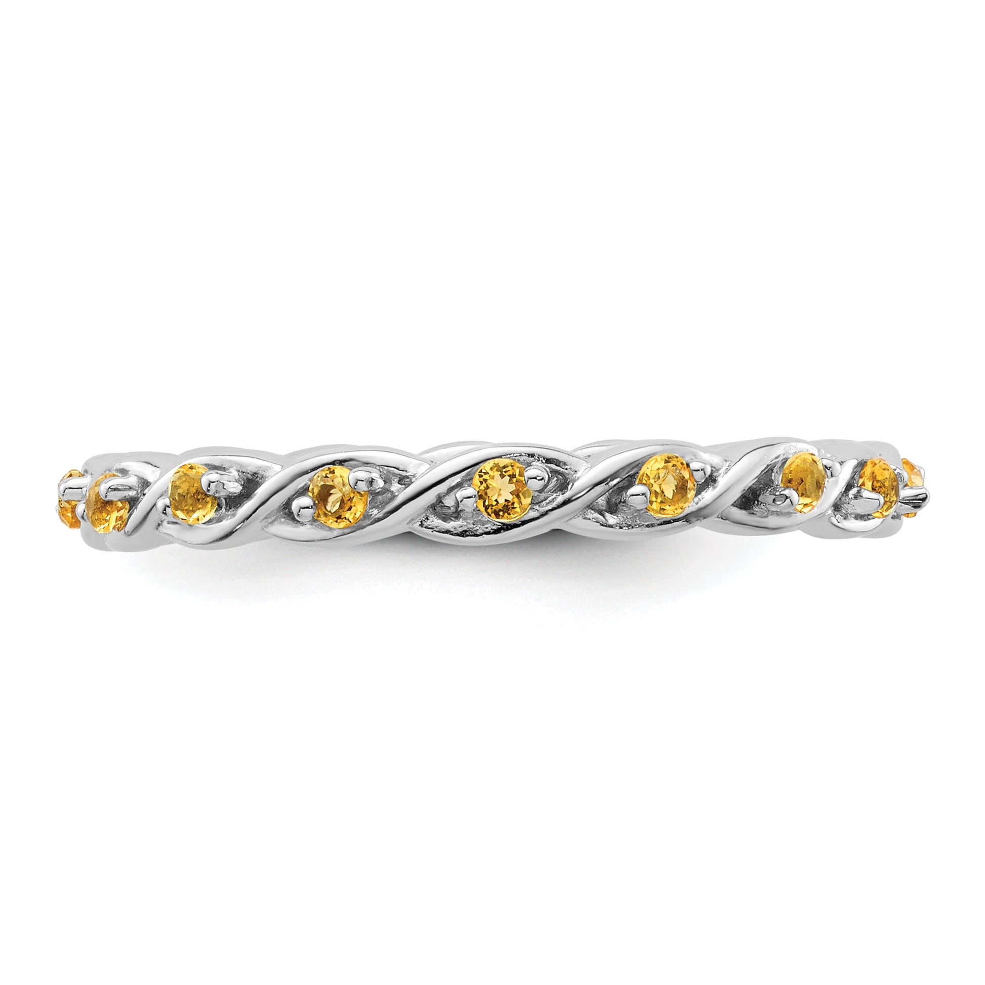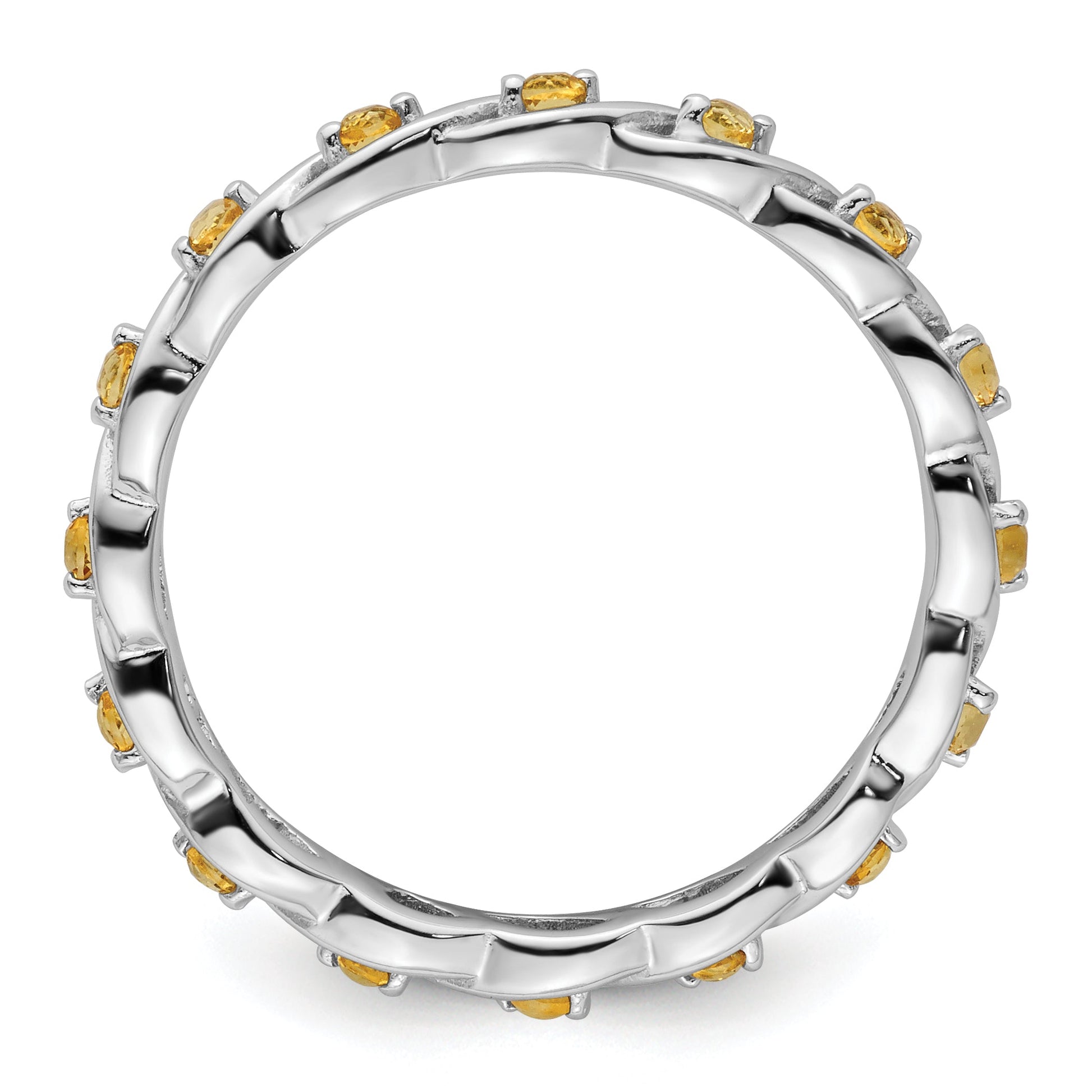 The Sterling Silver Stackable Expressions Citrine Ring is a lively piece that adds brightness to any look. Crafted from 925 sterling silver, it features 18 natural round citrine stones with a warm yellow hue. Each stone is set with prongs and weighs 0.27 carats total. The ring's solid cast design makes it sturdy, perfect for everyday wear. Its sleek eternity style stacks easily with other rings or stands alone as a statement. Now, your jewelry gets a fresh upgrade thanks to the Sparkling Expressions Citrine Ring. It’s a smart choice for those who love charm and quality in one piece.