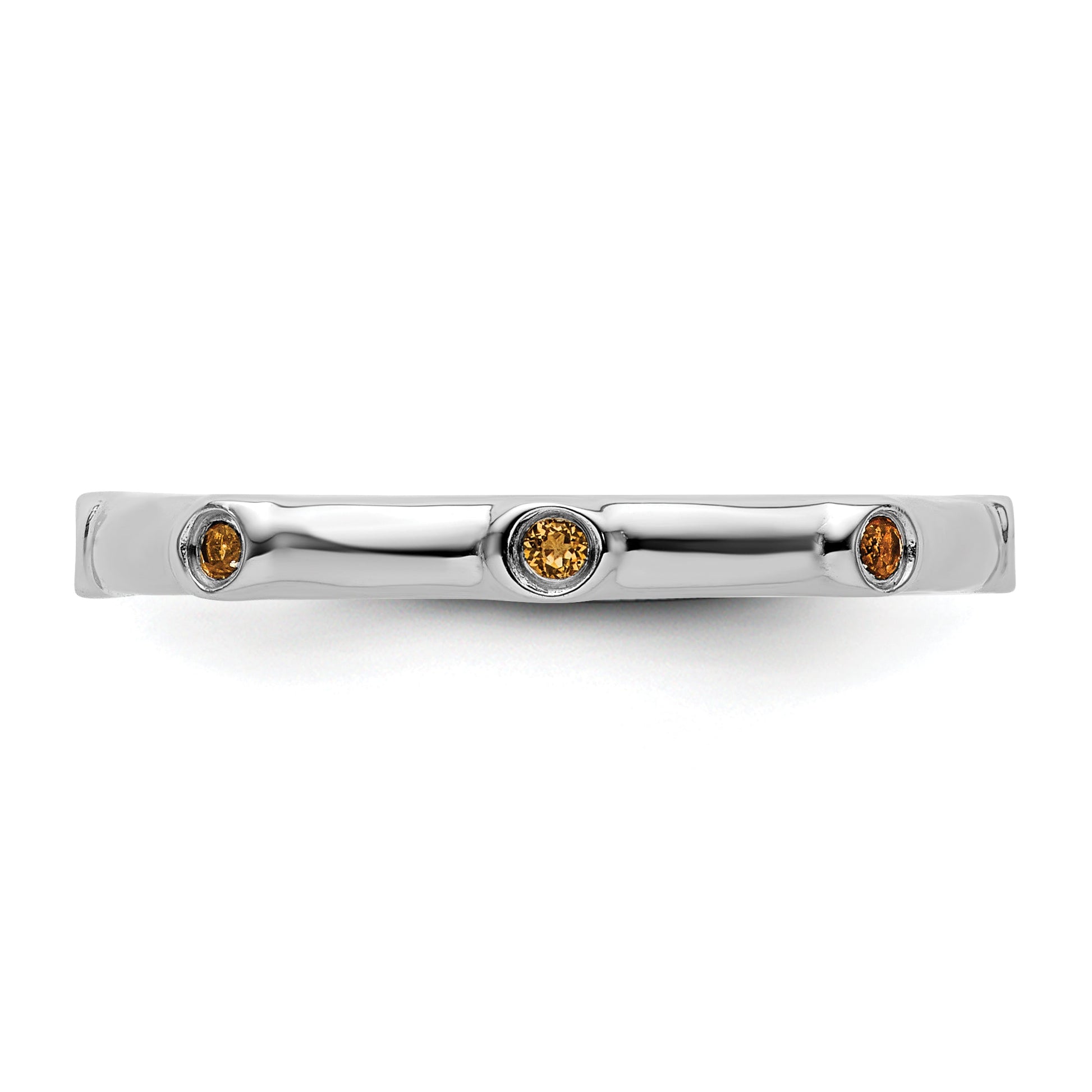 Introducing the Sterling Silver Stackable Expressions Citrine Ring, a perfect piece to add a pop of color to your jewelry collection. Crafted from pure sterling silver with a polished finish, this ring features nine vibrant yellow citrine stones, each bezel-set for a sleek look. The 2.25 mm band offers a comfortable fit, and the round stones, heating-treated for extra brilliance, sparkle with every move. The ring’s solid, cast design ensures durability and elegance. Perfect for stacking or wearing alone, the Sterling Silver Stackable Expressions Citrine Ring blends quality with style in a simple yet eye-catching piece.