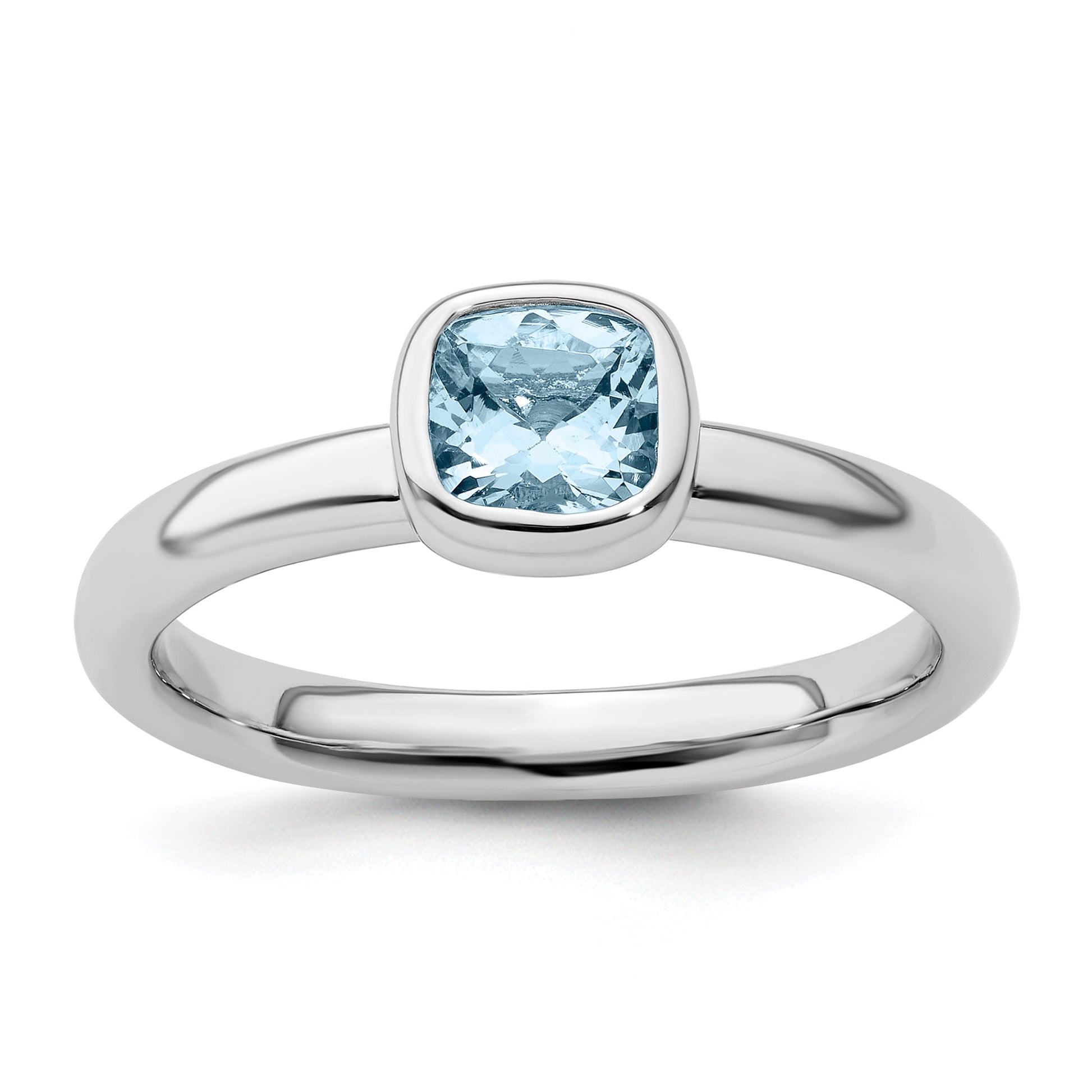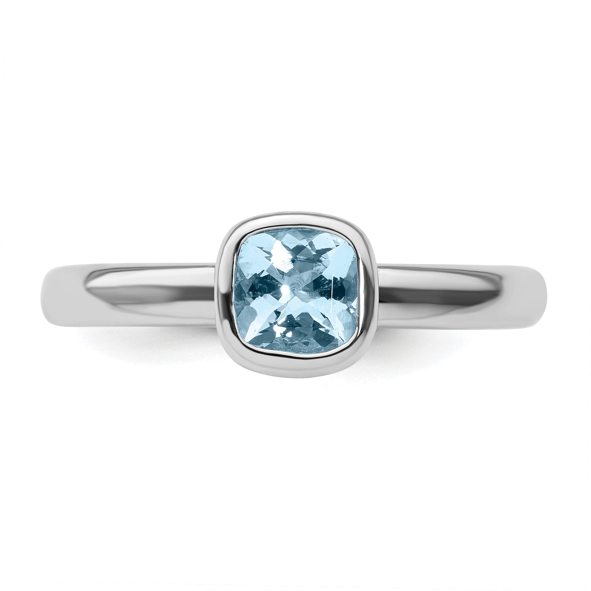 Sterling Silver Stackable Expressions Cushion Cut Aquamarine Ring