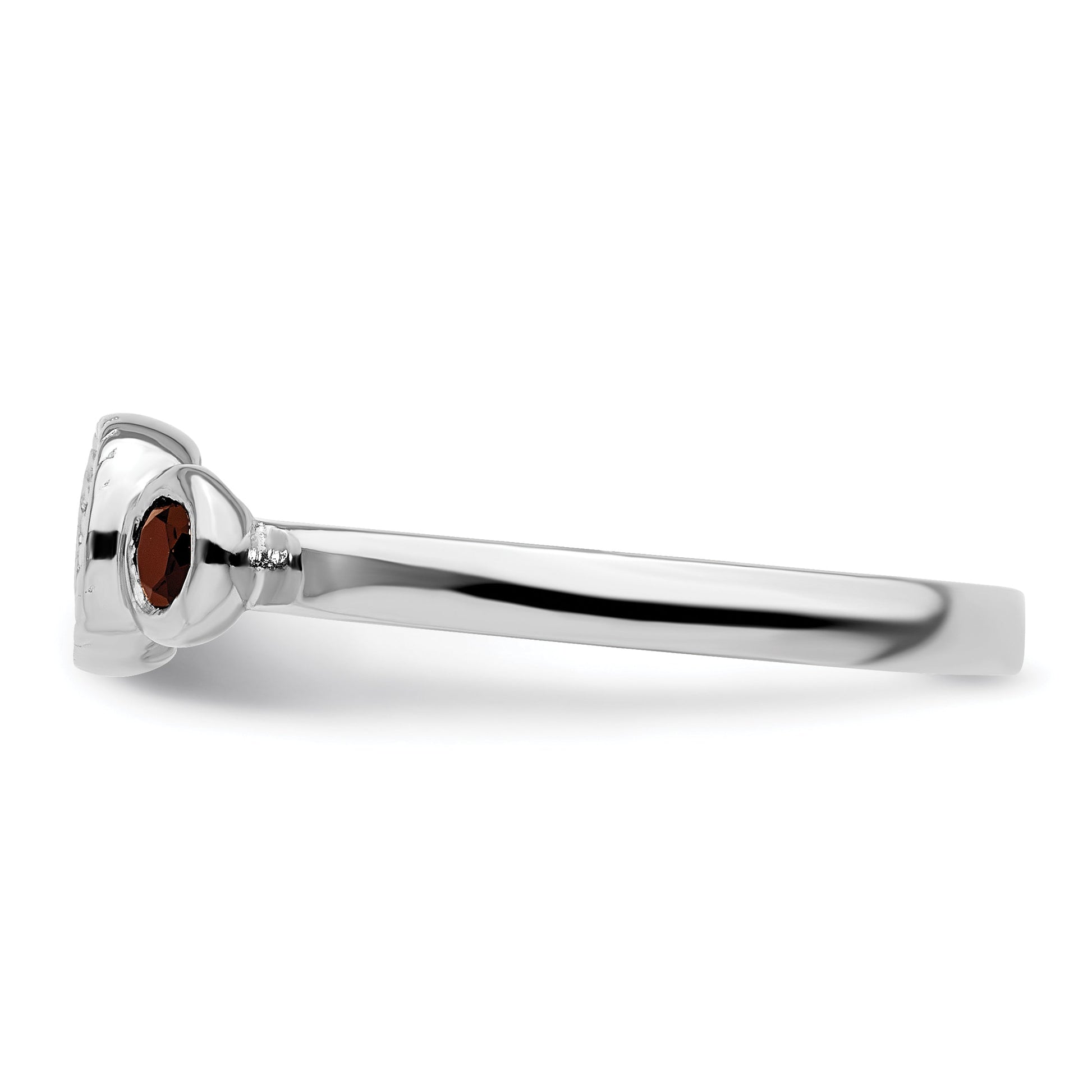The Sterling Silver Stackable Expressions Double Round Garnet & Diamond Ring is a gorgeous piece that adds style to any look. Crafted from high-quality 925 sterling silver with a polished finish, this ring features two vibrant red garnets and ten sparkling diamonds. The stones are bezel and pavé set, highlighting their natural beauty. With a slim 2.25 mm band, it’s perfect for stacking or wearing alone. The ring's solid construction and rhodium plating ensure durability and shine. Elevate your jewelry game with the Sterling Silver Stackable Expressions Double Round Garnet & Diamond Ring—timeless style you’ll love to wear every day.