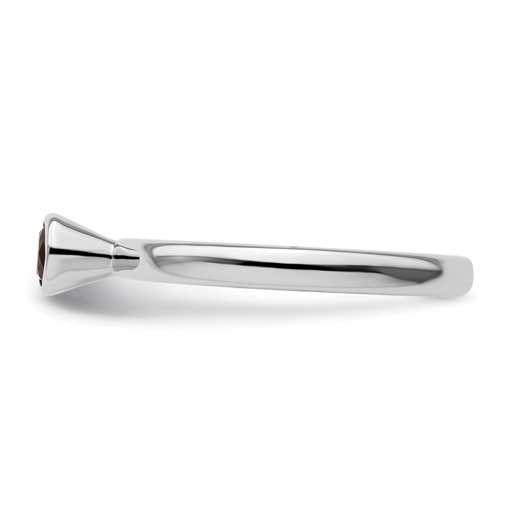 The Sterling Silver Stackable Expressions High 4mm Round Garnet Ring is a must-have for jewelry fans. Crafted from 925 sterling silver, this ring has a polished finish that catches the eye. It features a vivid red garnet stone, bezel-set in a 4mm round cut, giving it a sleek, modern look. The band measures 2.25 mm wide and offers a solid feel, perfect for stacking with other rings. The natural garnet sparkles with a weight of 0.321 ct. Whether worn alone or with your favorite stack, the Sterling Silver Stackable Expressions High 4mm Round Garnet Ring makes a bold statement of classic beauty.