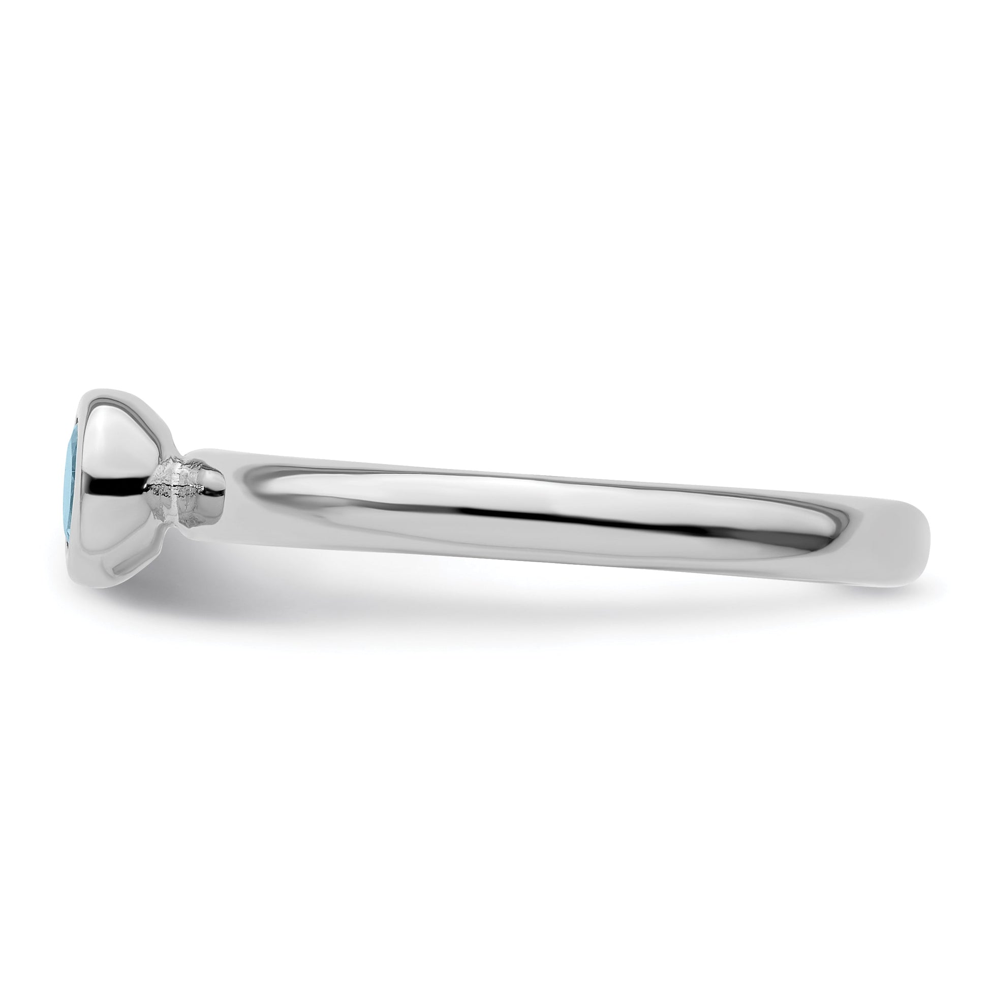Celebrate elegance with the Sterling Silver Stackable Expressions Low 4mm Round Aquamarine Ring. Crafted from 925 sterling silver and finished with a polished look, this ring features a vibrant blue aquamarine stone set in a secure bezel. Its slim 2.25 mm band allows you to stack multiple rings for a personalized style. The natural, heated aquamarine adds a pop of color that complements any outfit. Perfect for daily wear or special occasions, the Sterling Silver Stackable Expressions Low Aquamarine Ring offers a blend of beauty and durability that makes it a versatile addition to your jewelry collection.