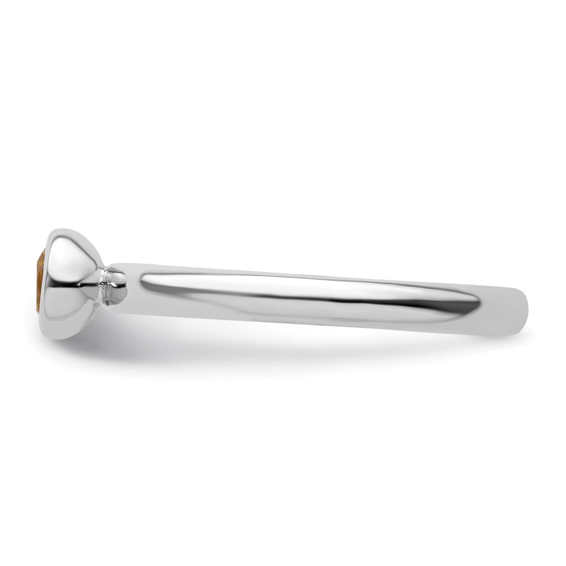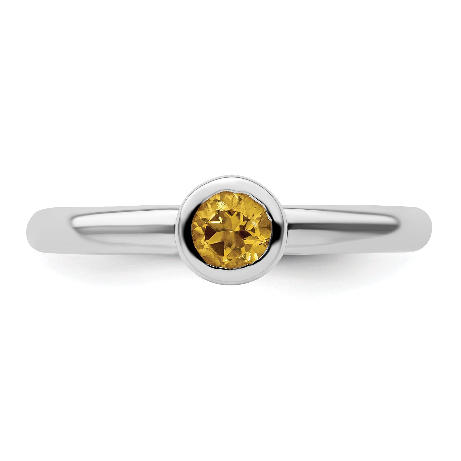 The Sterling Silver Stackable Expressions Low 4mm Round Citrine Ring is a perfect addition to your jewelry collection. Crafted from high-quality, solid 925 sterling silver, this ring features a vivid yellow citrine stone set in a bezel. The polished finish adds a bright shine, while the rhodium plating keeps it looking fresh. Its sleek 2.25mm band fits comfortably and stacks well with others. The natural, heated citrine measures 4mm and has a weight of 0.223 carats. Whether worn alone or layered, the Sterling Silver Stackable Expressions Low 4mm Round Citrine Ring adds a pop of sunny color and style to any outfit.