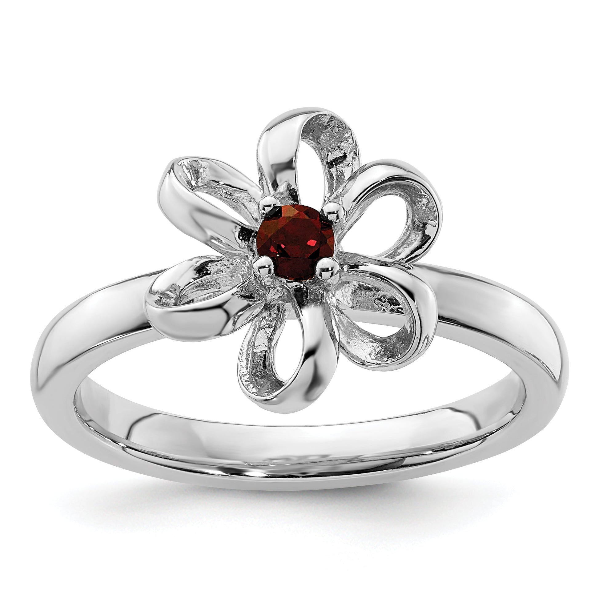 Sterling Silver Stackable Expressions Polished Garnet Flower Ring
